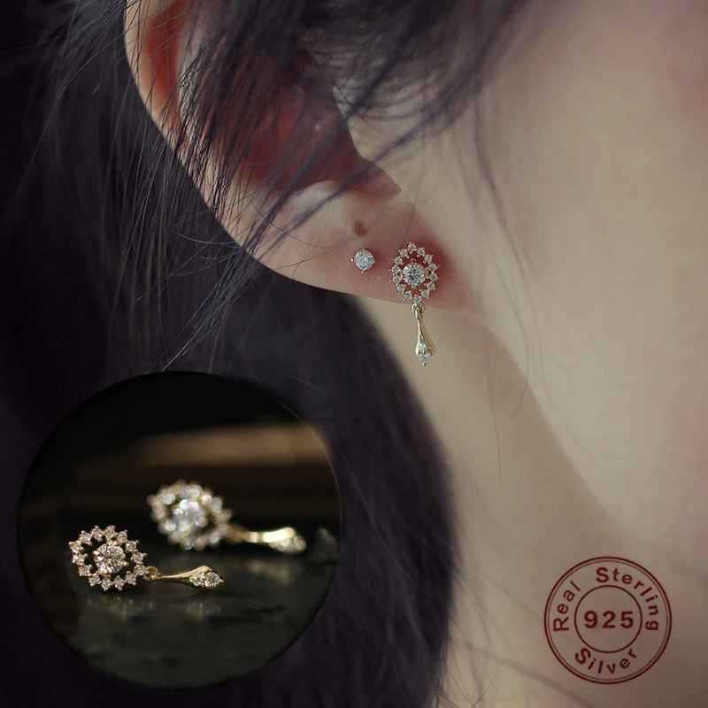 ★Материал:Серебро 925 пробы с покрытием из 14-каратного золота, серебро 925 пробы с покрытием из белого золота, не аллергенное, инкрустированное 5А цирконием, на фото 14K золото