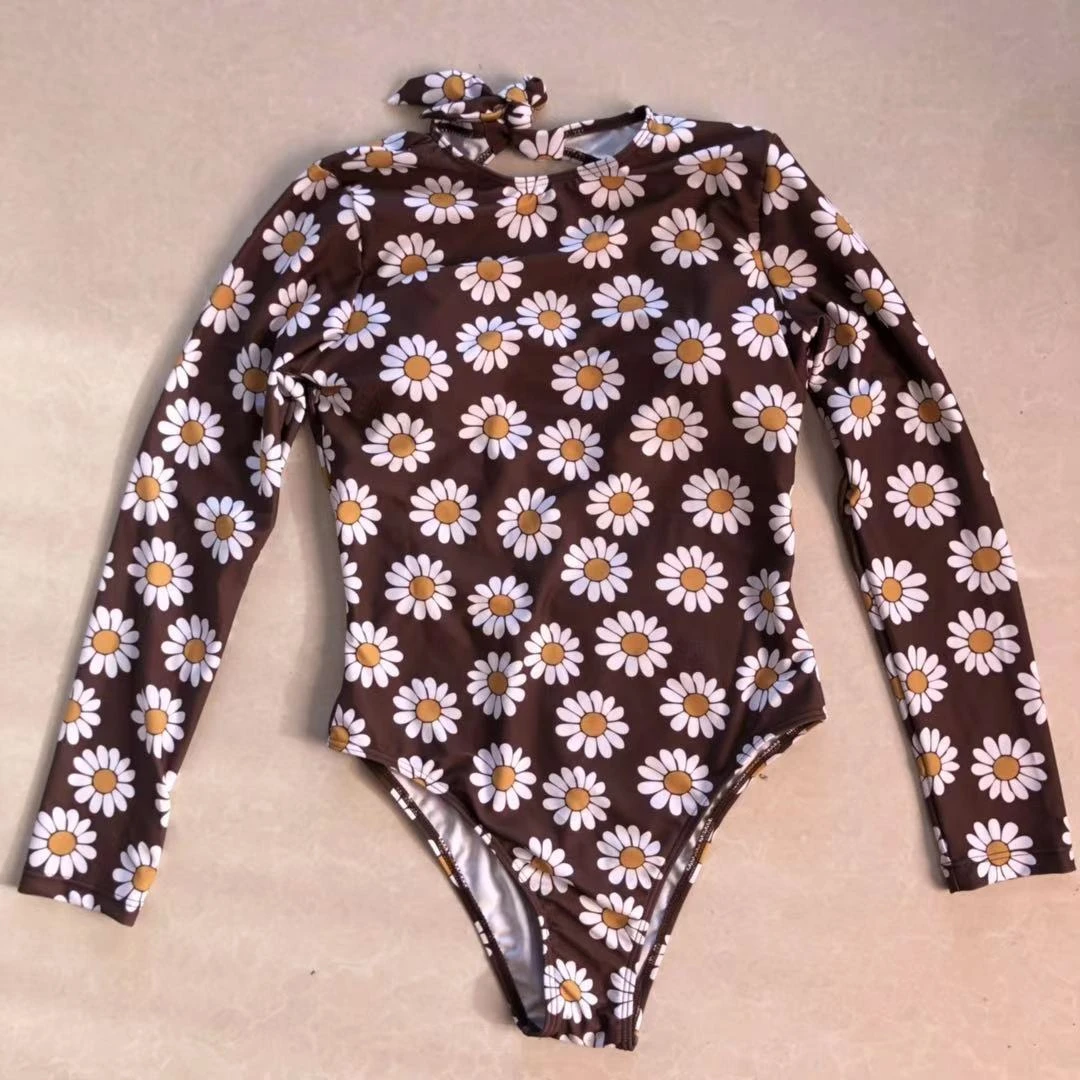 Женский купальник с длинным рукавом, одежда для серфинга, купальник, Цельный купальник с открытой спиной, цветочное бикини, пляжная одежда для девушек, одежда для защиты от сыпи, 2022