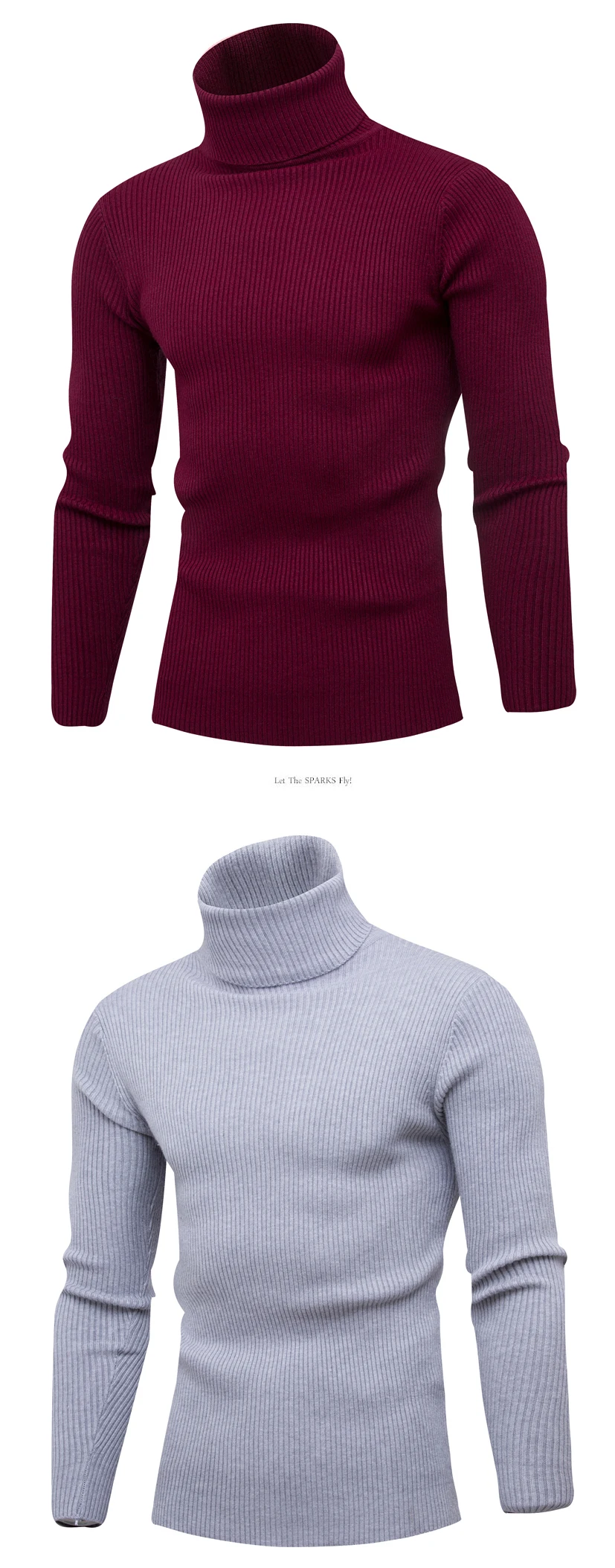 Мужской вязаный свитер с высоким воротником, однотонный Повседневны...