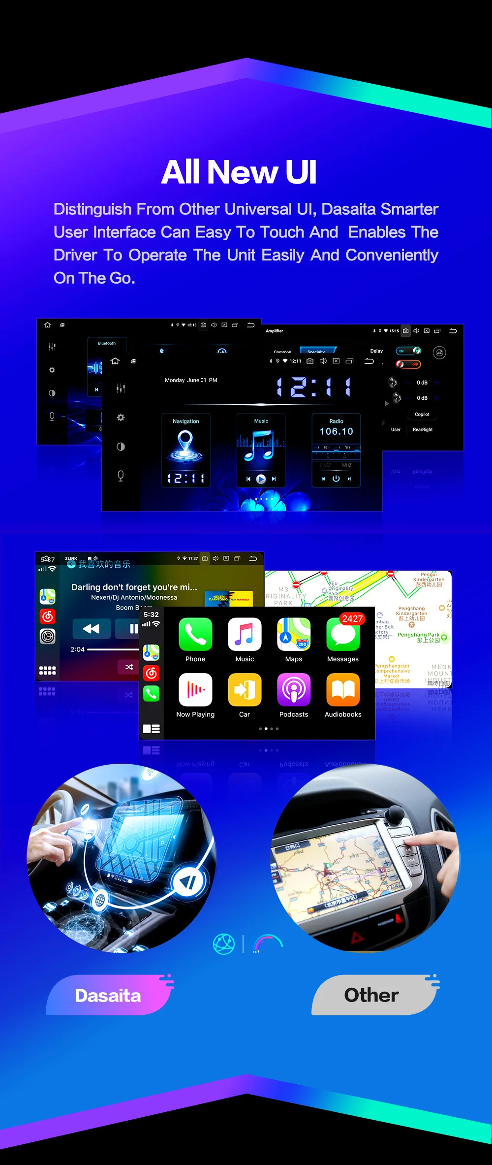 Сенсорный экран Muliti-Touch 1280*720Автомобильная стереосистема In-dashРадио/A2DP/Bluetooth/WIFI/эквалайзер/навигация/МузыкаDSP/промежуточный выход