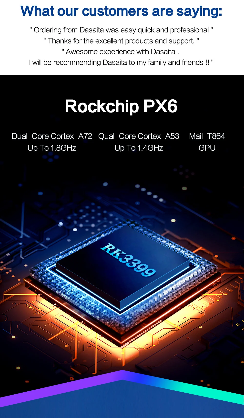 ОС: Android 10Процессор: RK3399, двойной Cortex-A72 + Quad Cortex-A53, 64-разрядный процессорОЗУ: 4 ГбROM : 64 ГБГрафический процессор: Mali-T860MP4Радио: ST7708Bluetooth 5,0: RF210Разрешение: 1280*720Экран: IPSКнопка подсветки: RGB