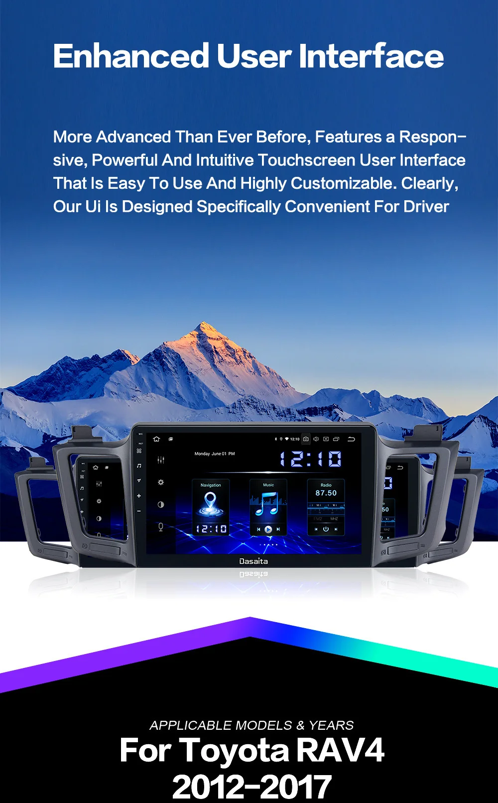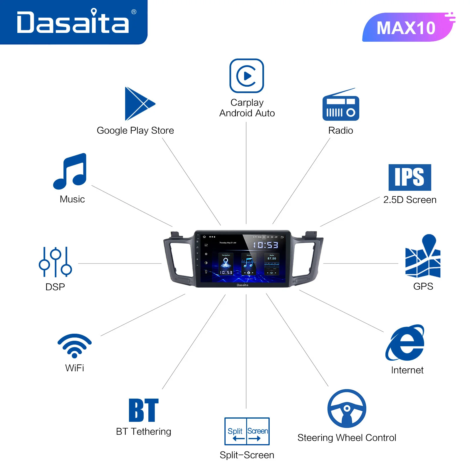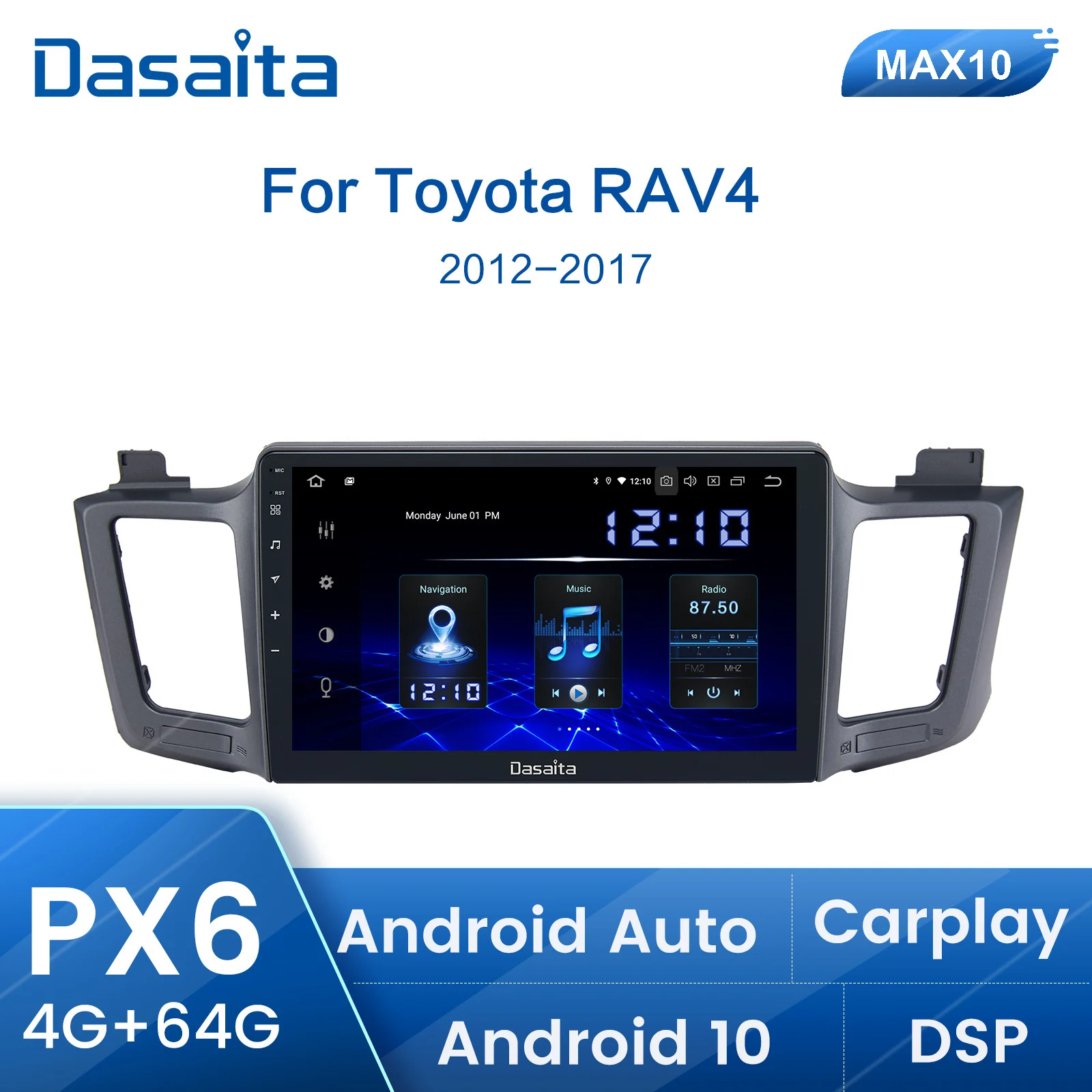Автомобильная Мультимедийная система Dasaita, автомагнитола на Android с IPS-экраном 10,2 дюйма для Toyota RAV4, GPS, 2014, 2015, 2016, BT5.0, MP3, 4 ГБ, 64 ГБ