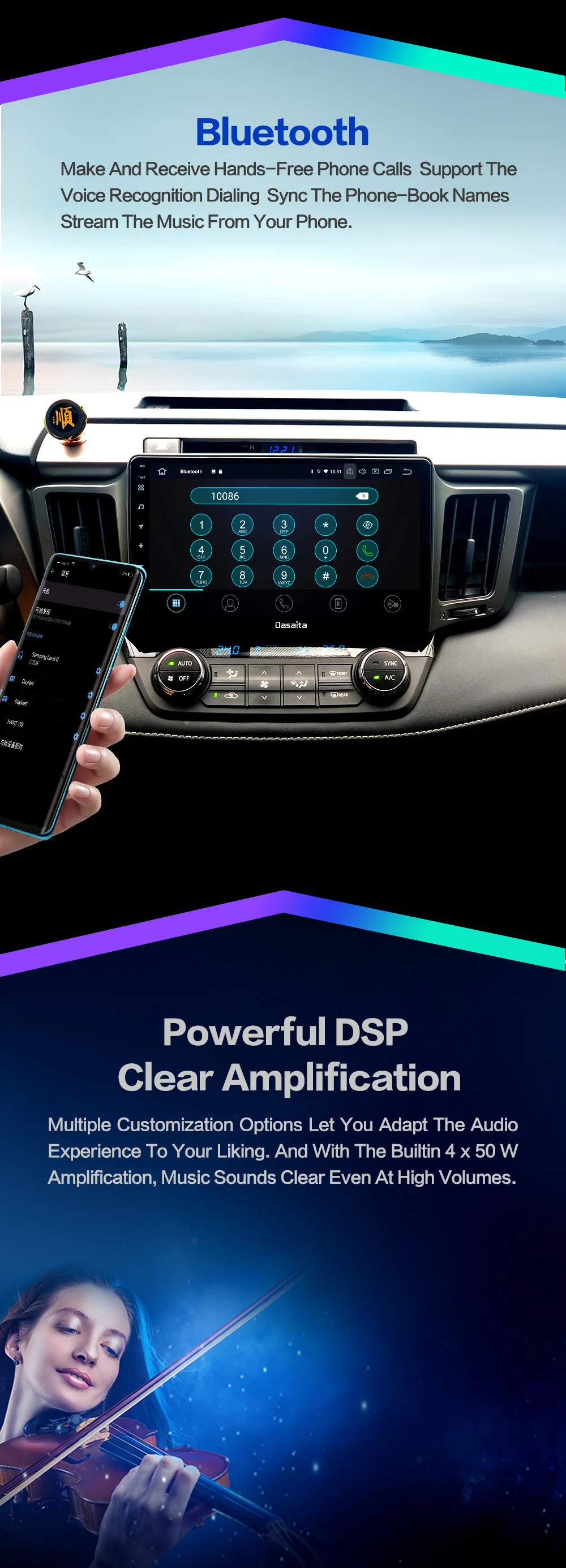 Поддержка оригинальной камеры, AUX/USB , SWC, информация о автомобиле, JBL,