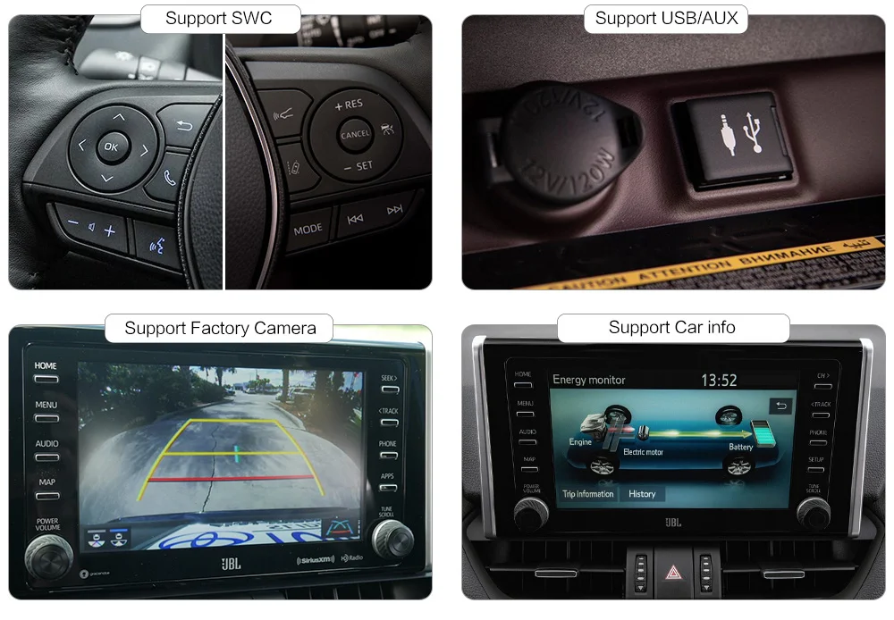Поддержка оригинальной камеры, AUX/USB , SWC, информация о автомобиле, JBL,