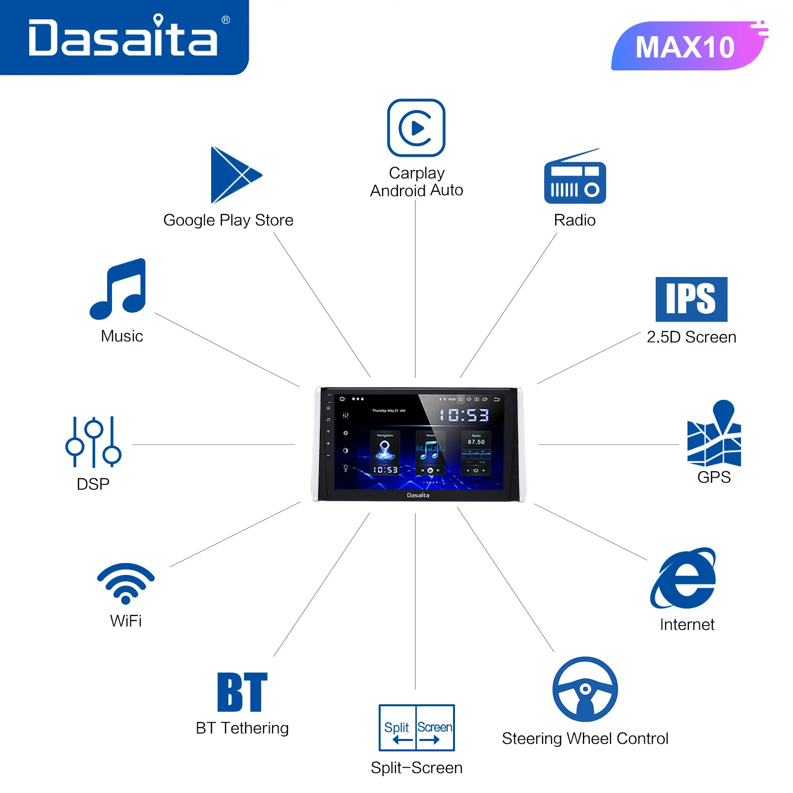 Dasaita 10,2 "IPS Автомобильный мультимедийный Android автомобиль для Toyota RAV4 РАДИО 2018 2019 TDA7850 GPS BT5.0 автомобильный стерео стереозвук стерео 720 *