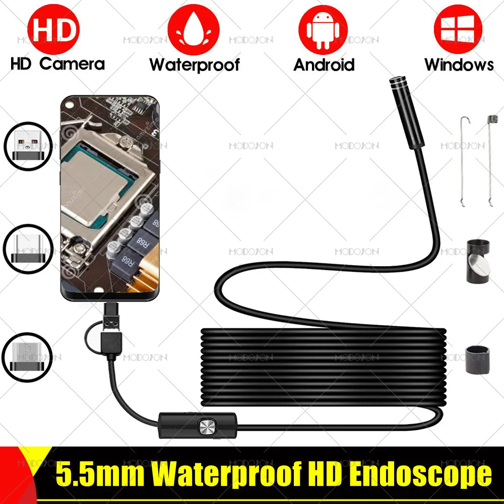 Камера-Эндоскоп HD, 5,5 мм, OTG, Micro USB, Type-C