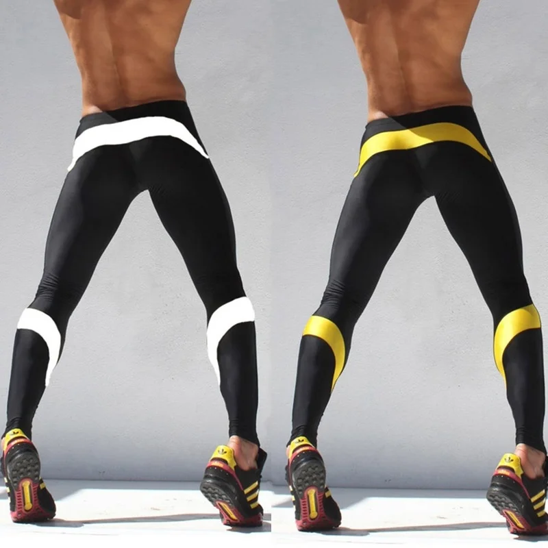 Мужские лоскутные компрессионные колготки для бега, эластичные спор...