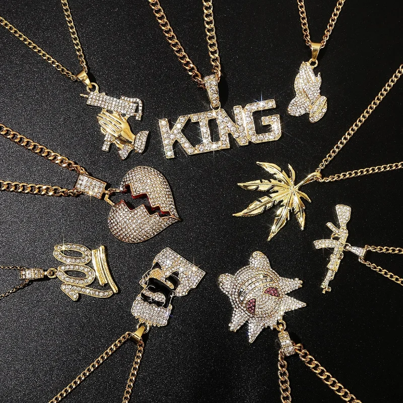 Панк Хип-Хоп Ожерелья буквы полный гранж Мужская цепочка кулон хип-...