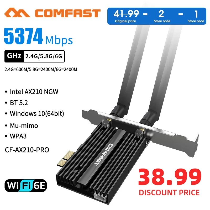 Для компьютера WIFI 6E PCIe беспроводной Wifi адаптер двухдиапазонный 5374 Мбитс 2,4G5Ghz6G 11AX Bluetooth 5,2 AX210NGW Wi-Fi карта