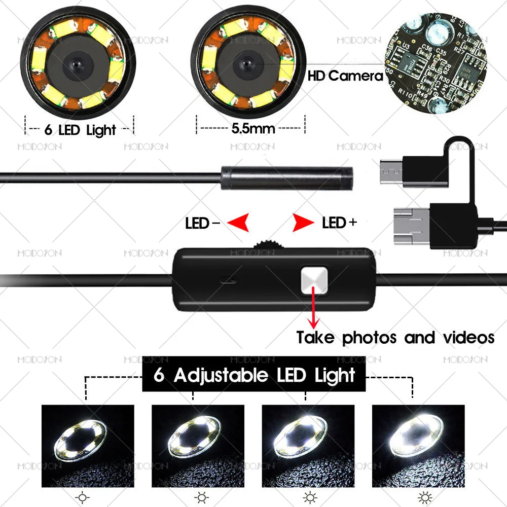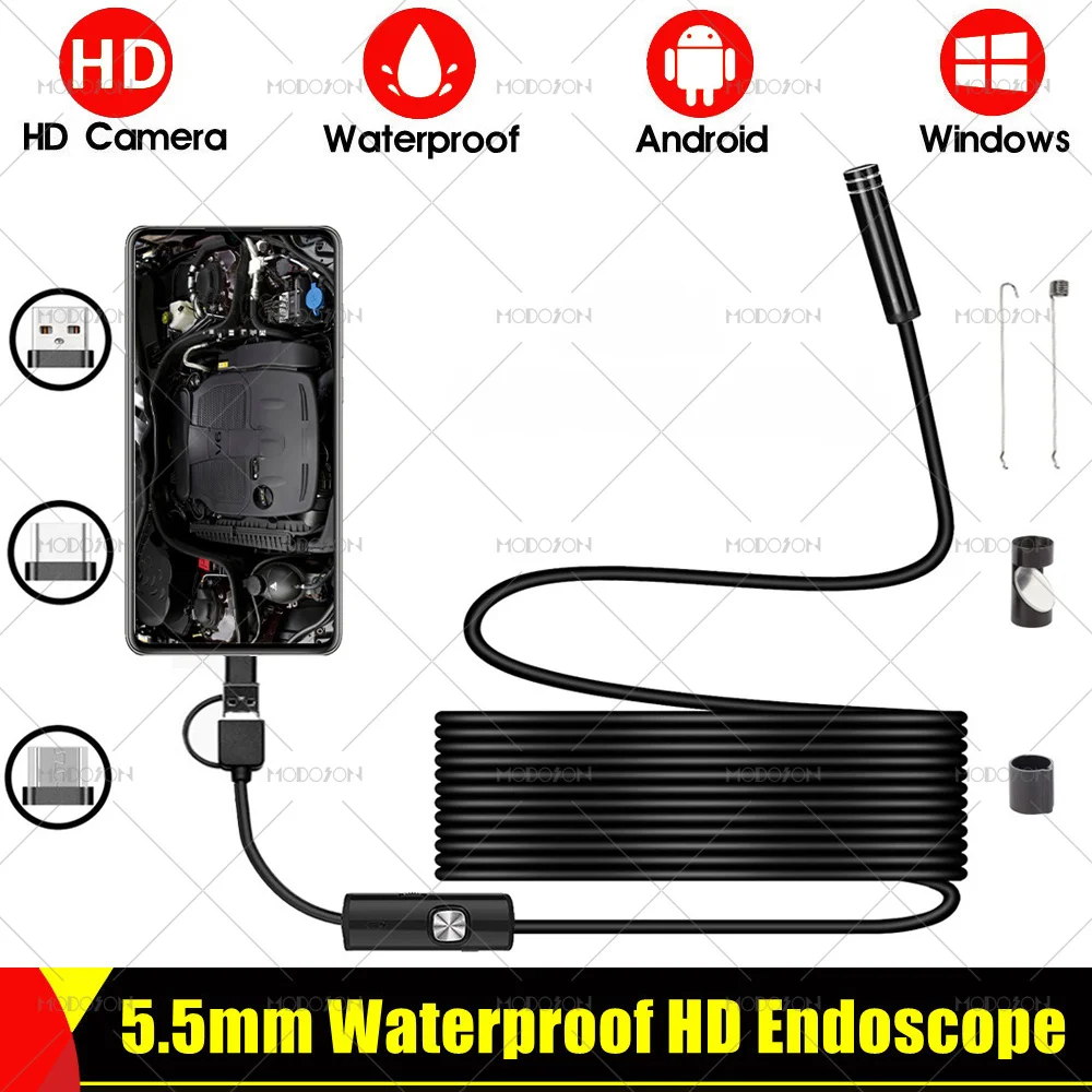 5,5 мм HD эндоскоп Камера OTG Micro Тип USB-C Водонепроницаемый мягкий жесткий змея гибкий кабель с ПВХ изоляцией трубке Бороскоп с осмотра автомобиля эндоскопии