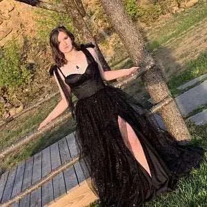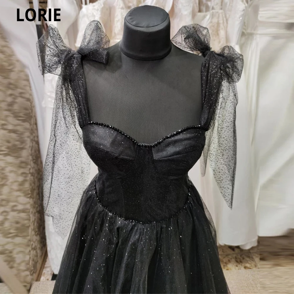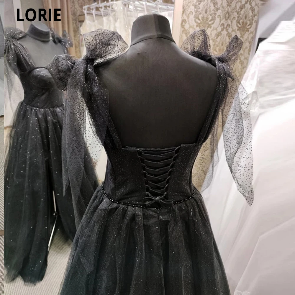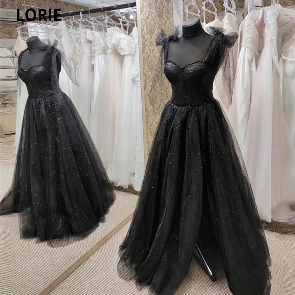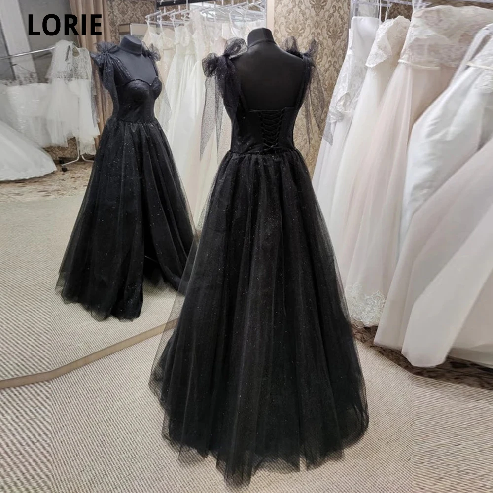 Блестящее черное простое ТРАПЕЦИЕВИДНОЕ длинное платье LORIE для выпускного вечера вечерние платья на тонких бретелях с бантом длиной до пола вечернее платье из тюля