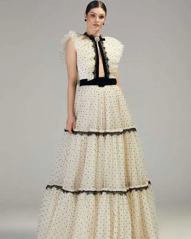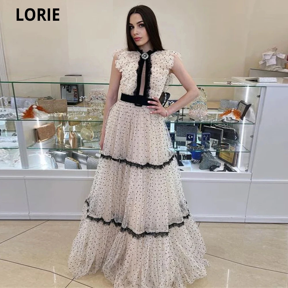LORIE 2022 белое черное ТРАПЕЦИЕВИДНОЕ вечернее платье в горошек с высоким воротником кружевные халаты без рукавов для вечеринки халаты для коктейвечерние платье для выпускного вечера
