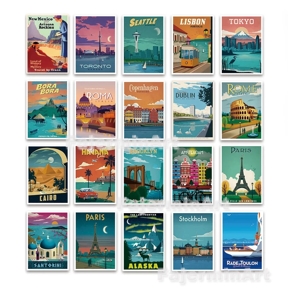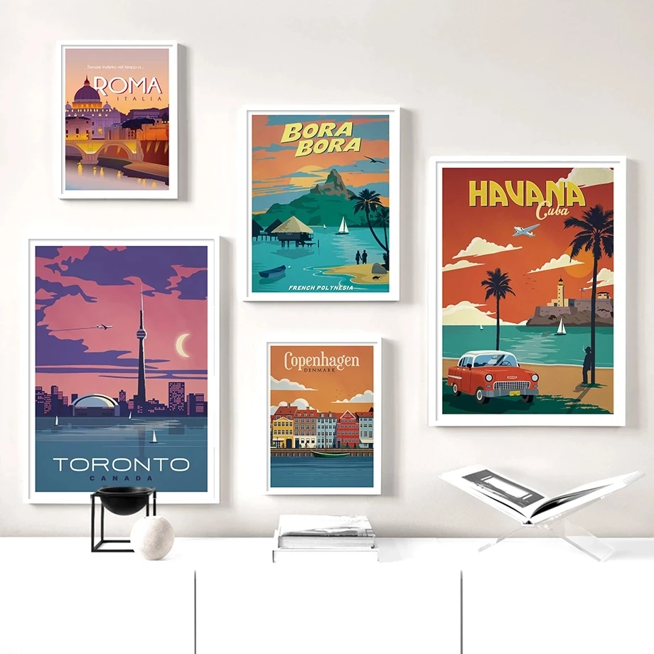 Винтажный постер для путешествий по городу, природа, туризм, Рим, Торонто, пейзаж, настенное искусство, холст, живопись, печать для интерьера, домашний декор