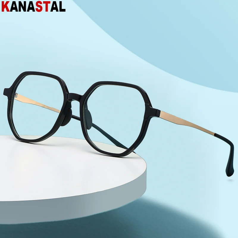 Женский синий светильник, блокирующие очки, мужские TR90, металлические полигональные очки, оправа, очки, компьютерные, по рецепту, очки для близорукости и дальнозоркости