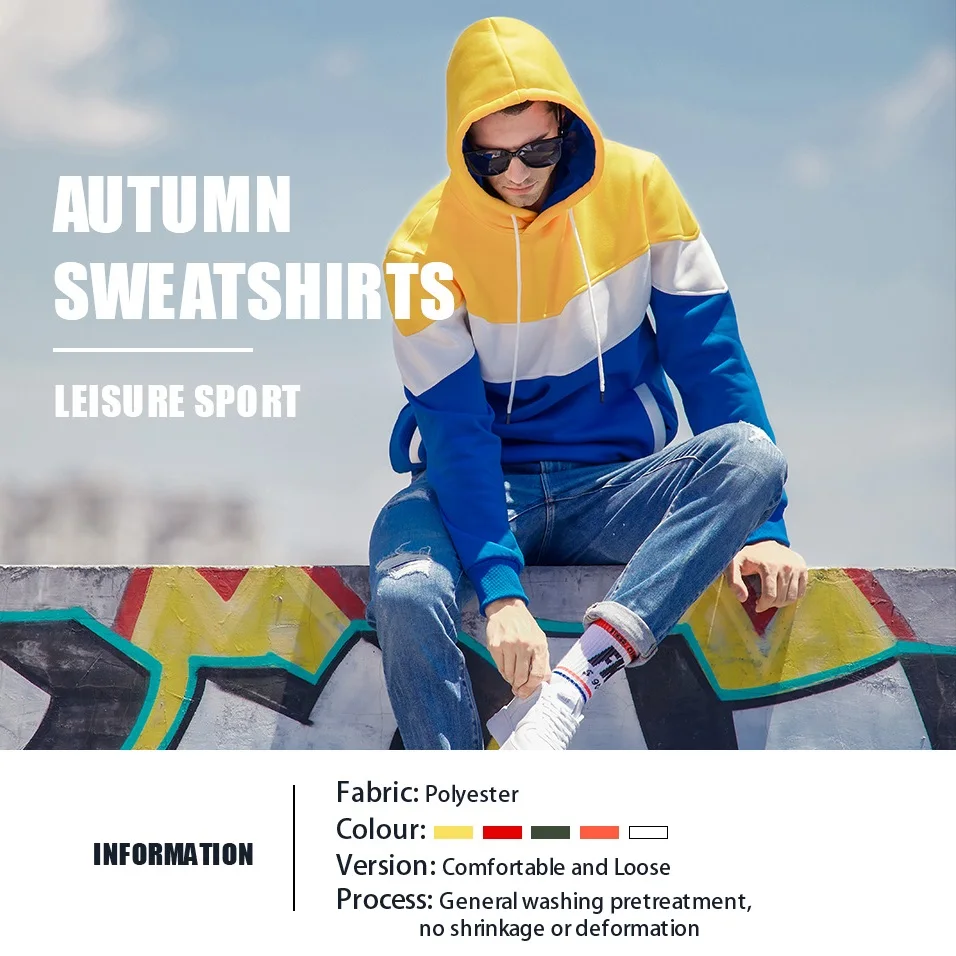 Толстовка мужская флисовая, повседневный свитшот с капюшоном, уличная одежда в стиле хип-хоп, свободные худи, Индивидуальные топы в стиле пэчворк, весна-зима