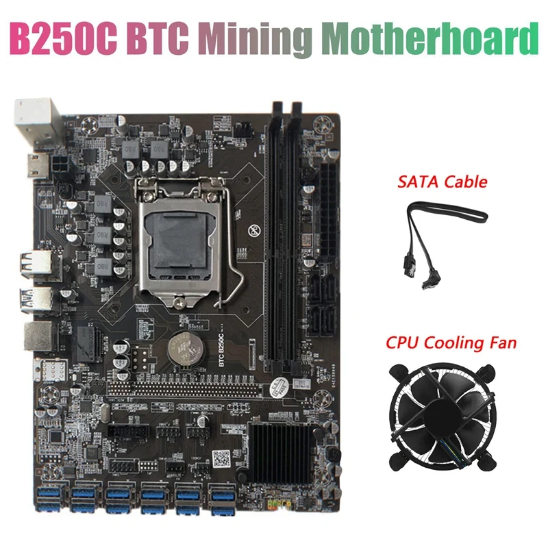 Материнская плата B250C для майнинга BTC с кабелем SATA + вентилятор 12xpcie в разъем для графической карты USB3.0 LGA1151 поддерживает DDR4 DIMM RAM