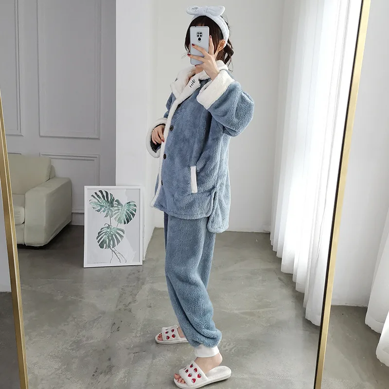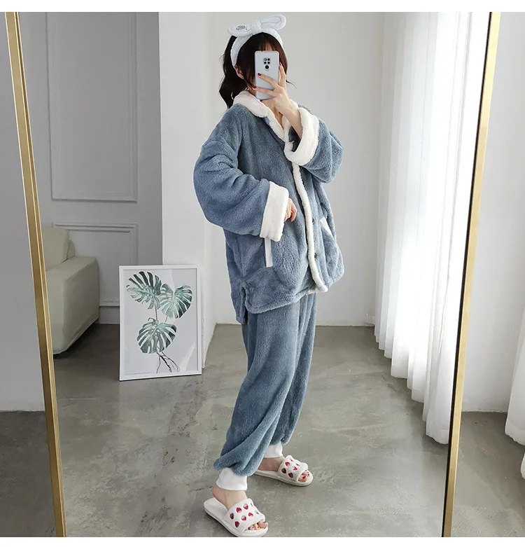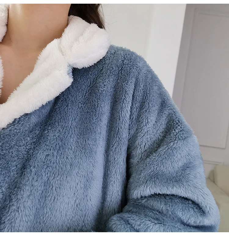 Женская зимняя Толстая флисовая Пижама 130 кг, синий обхват груди 140 см, Свободный кардиган, теплый фланелевый домашний костюм 4XL 5XL