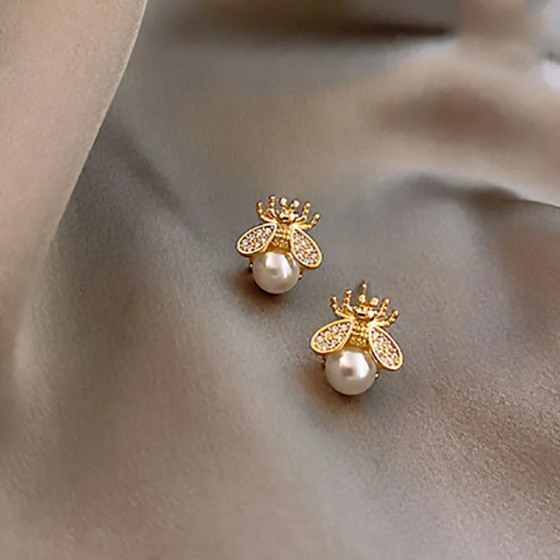 Серьги-гвоздики с кристаллами и жемчугом женские, изысканные украше...