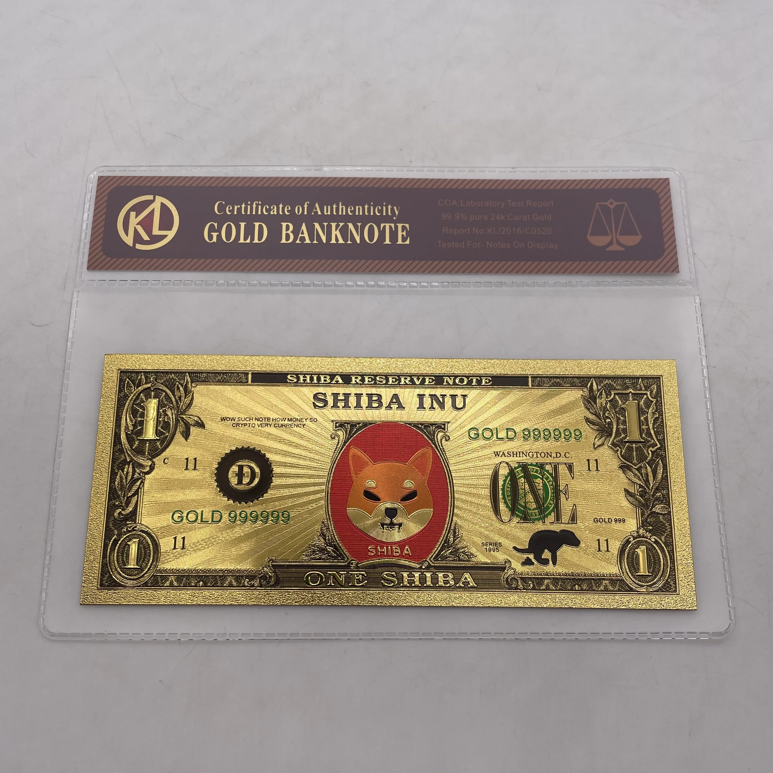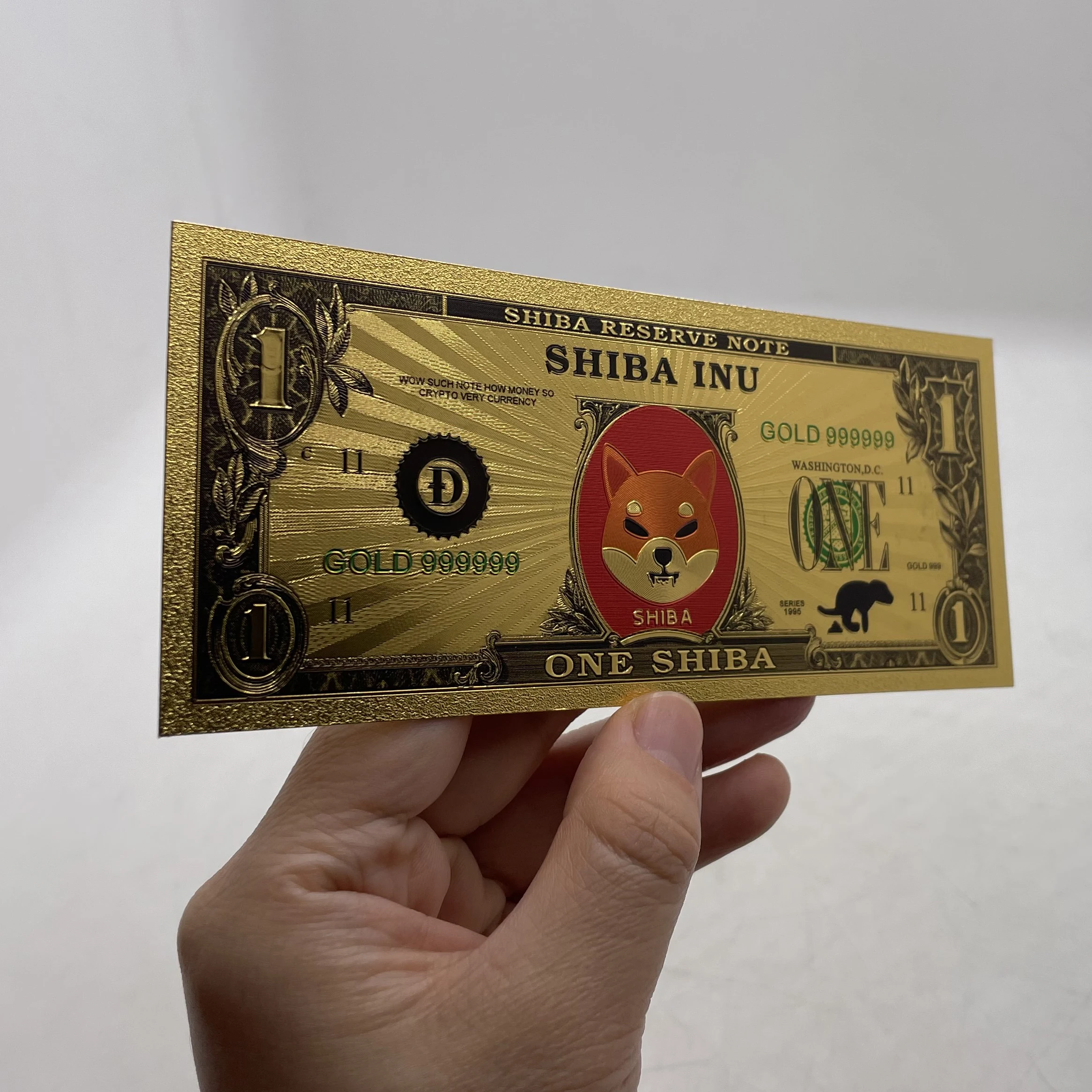 Красивый догкоин-убийца Сиба-ину, Золотая банкнота (SHIB), криптовато-металлическая позолоченная физическая шиб красная монета