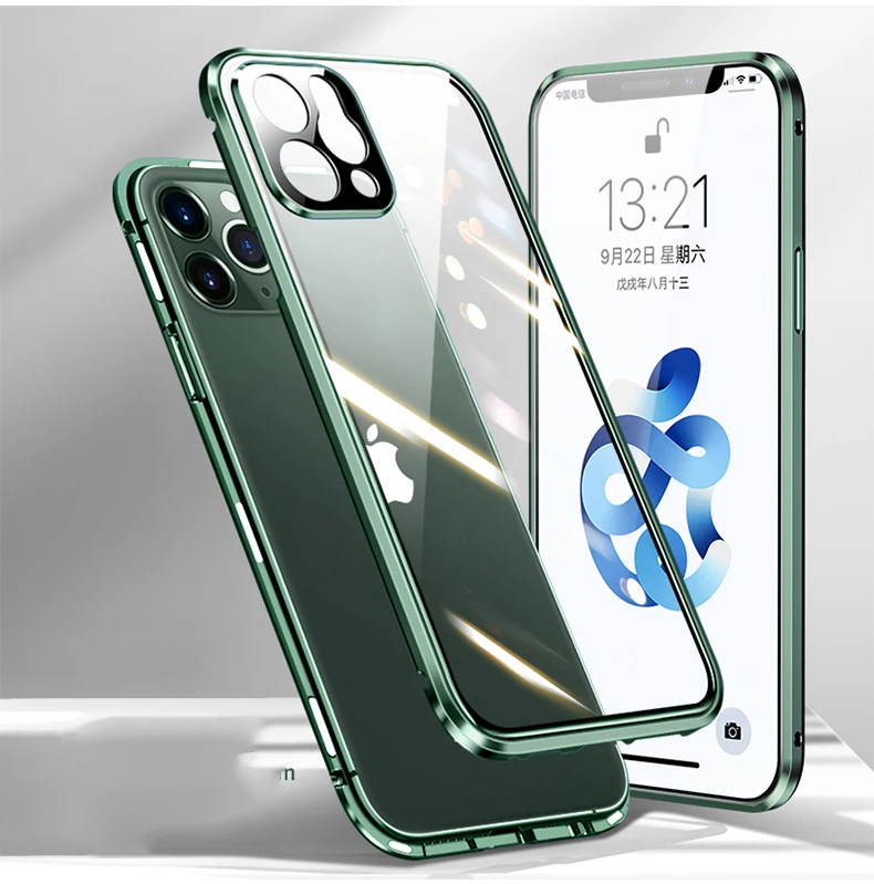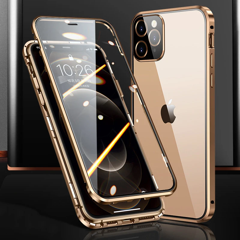 Металлический магнитный чехол для телефона iPhone 12 13 11 Pro Max 7 8 Plus X XR XS Max прозрачный 360 двухсторонний чехол из закаленного стекла