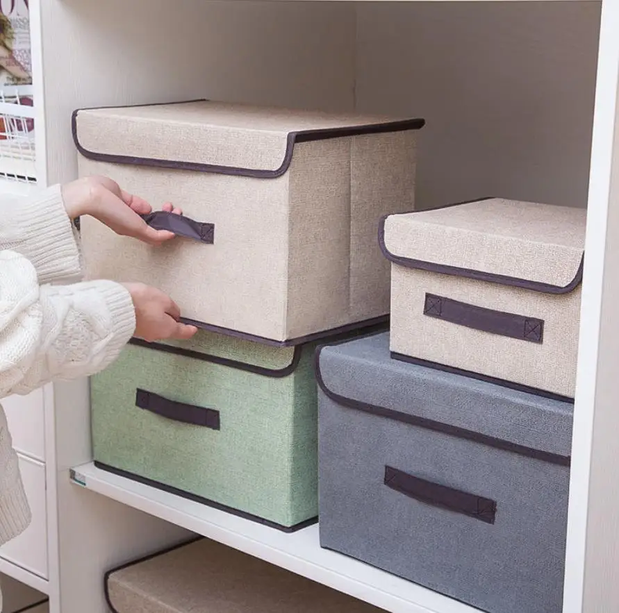 Ящик для хранения из хлопка и льна с крышкой, 2 размера, органайзер для одежды, носков, игрушек, закусок, мелочей, Набор тканевых коробок, косметика для дома