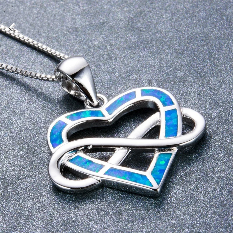 Женский кулон в форме сердца, с синим кристаллом