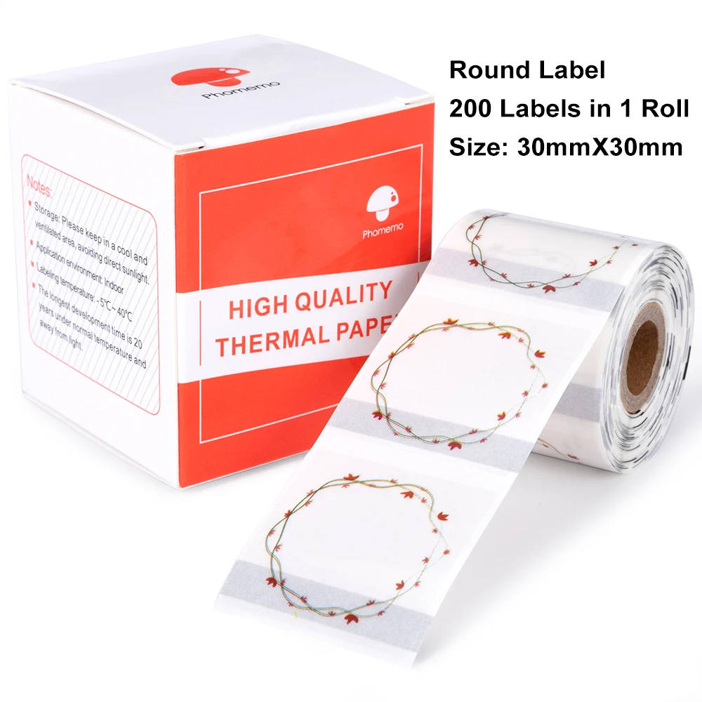 Самоклеящиеся этикетки Phomemo с круглым узором, бумага для печати этикеток Phomemo M110M200, термонаклейка, рулон бумаги для печати