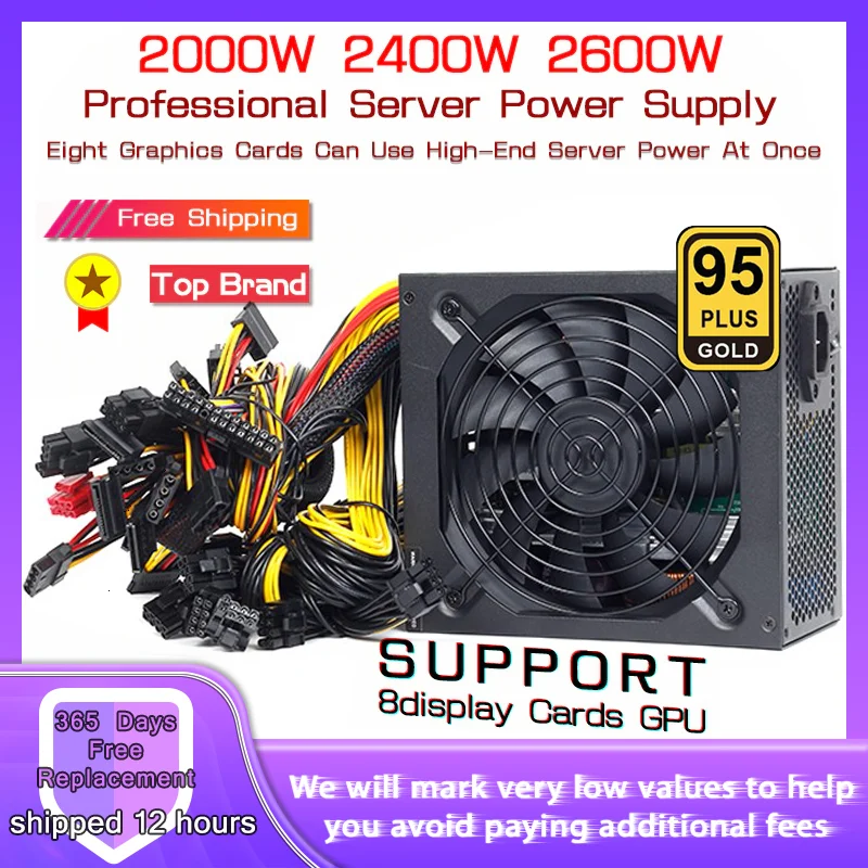 Блок питания для майнинга биткоинов ATX ETH, 2000 Вт, 2400 Вт, 2600 в-180 в, 260 КПД, поддержка 8 дисплеев, GPU для майнинга биткоинов BTC