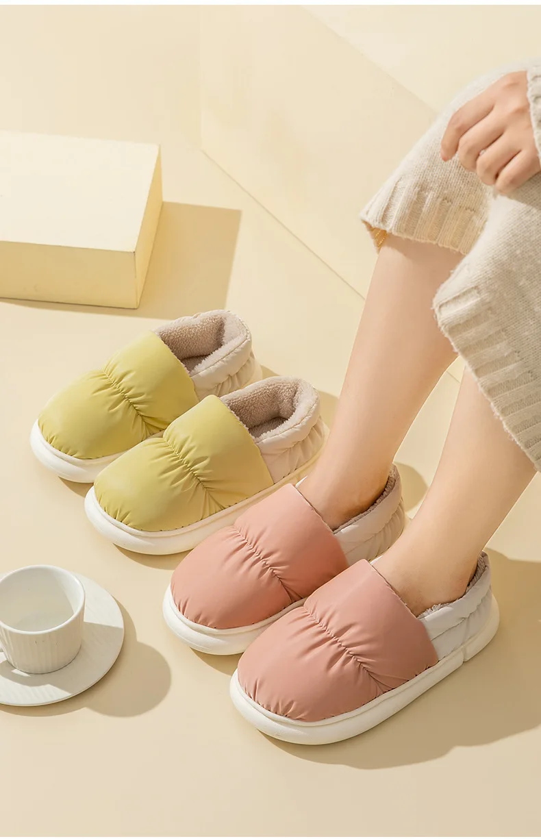 Новинка, хлопковая швабра, теплые мягкие плюшевые толстые домашние тапочки, водонепроницаемая домашняя обувь из искусственной кожи для женщин, полноразмерные противоскользящие туфли