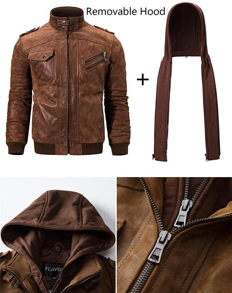 Мужская мотоциклетная куртка, коричневая кожаная куртка со съемной ...