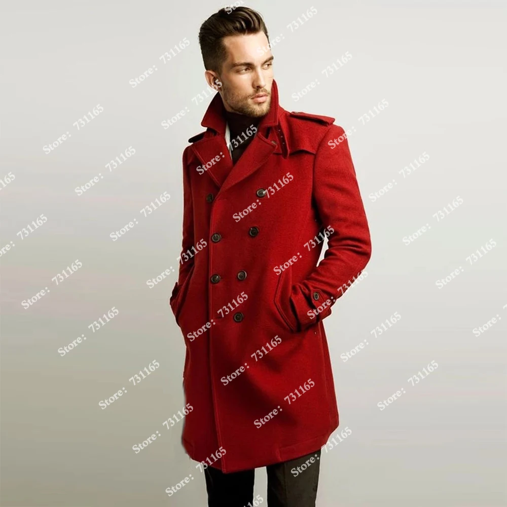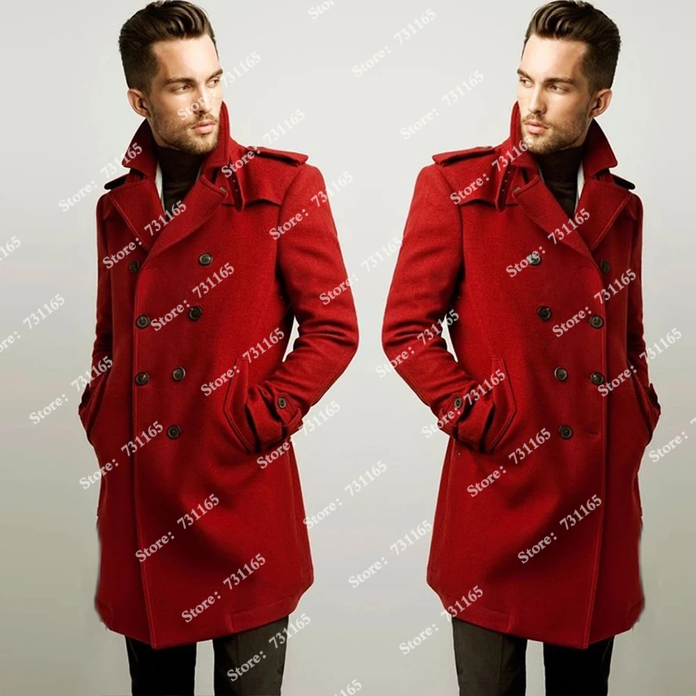 Классические красные мужские зимние куртки, сделанные на заказ твидовые шерстяные комбинированные толстые тренчкоты, двубортное пальто, облегающий блейзер для жениха