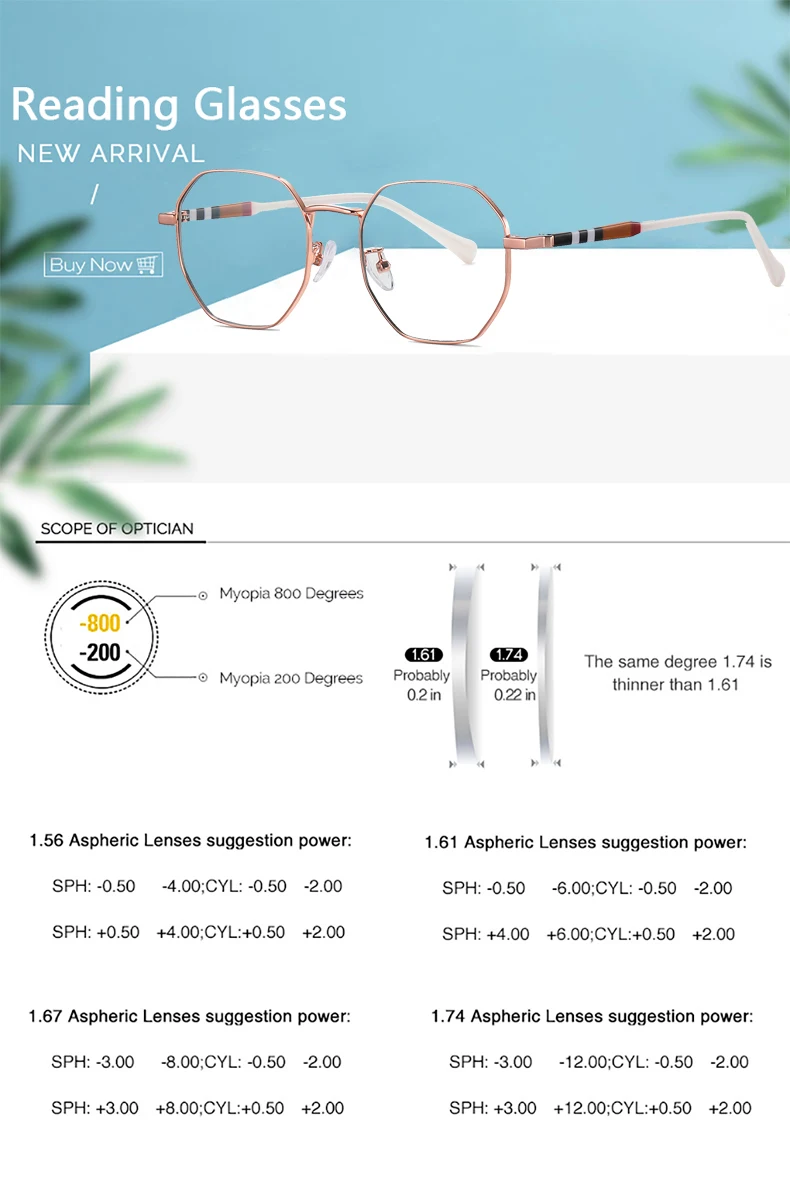Мужские очки с блокировкой синего света, женские очки для чтения при дальнозоркости, многоугольные оправы для очков, металлические линзы CR39, очки по рецепту