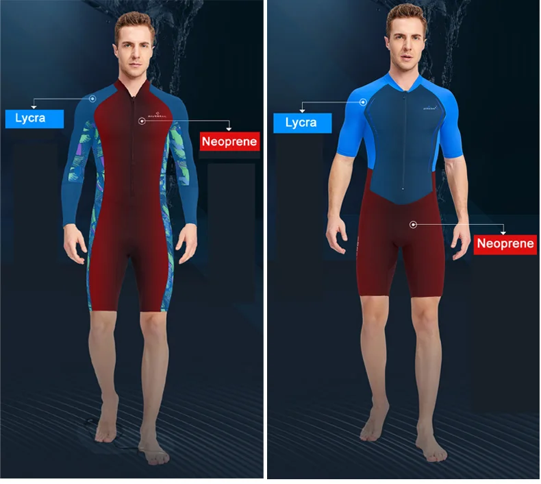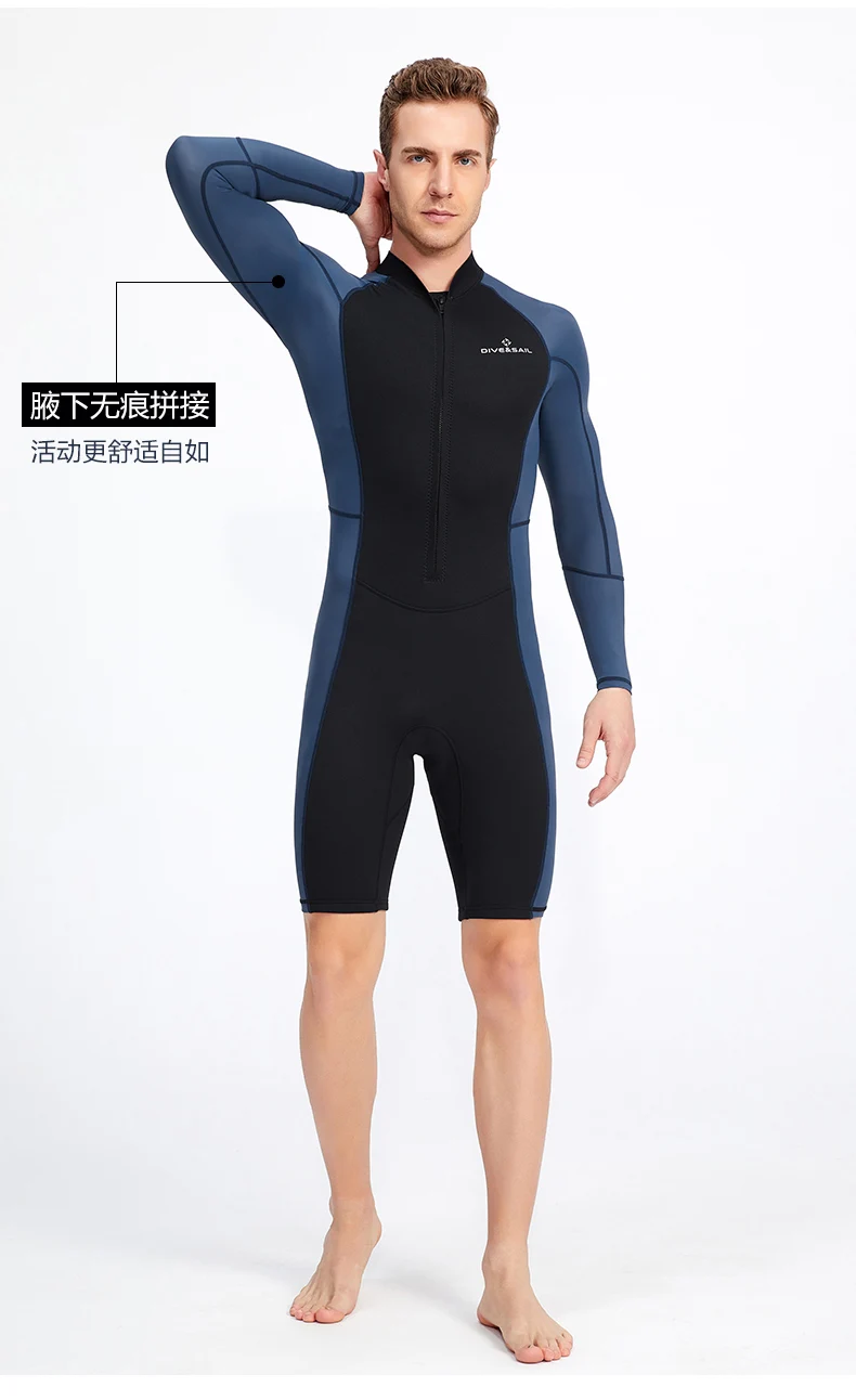 Мужские Гидрокостюмы из неопрена 1,5мм, лайкра 0,5 мм, с длинным рукавом и молнией спереди, шорты для дайвинга, Сноркелинга, серфинга, плавания на каноэ