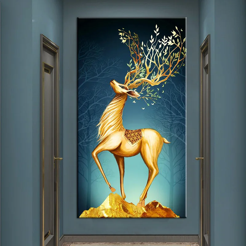 Скандинавская Абстрактная Картина на холсте золотого лося, животное, настенное искусство, постер с оленем и принты, Современная гостиная декоративные картины для дома