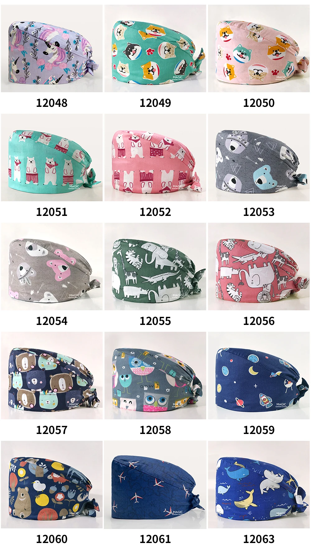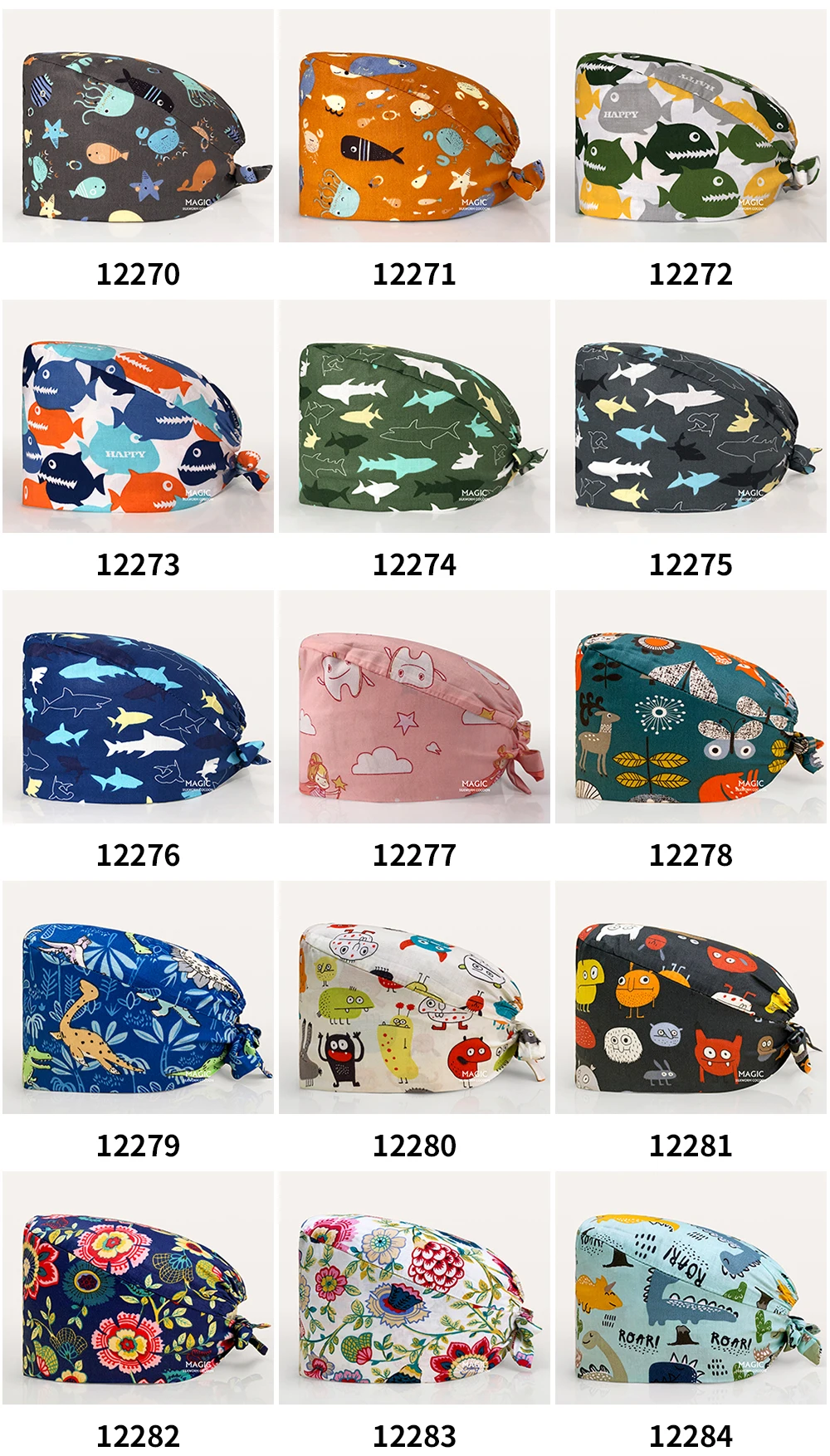 Шапка-медицинские шапочки для косметолога, мультяшный матовый принт...