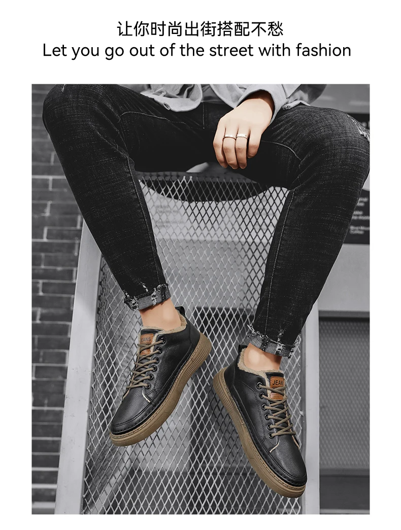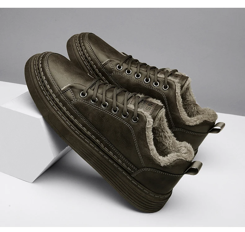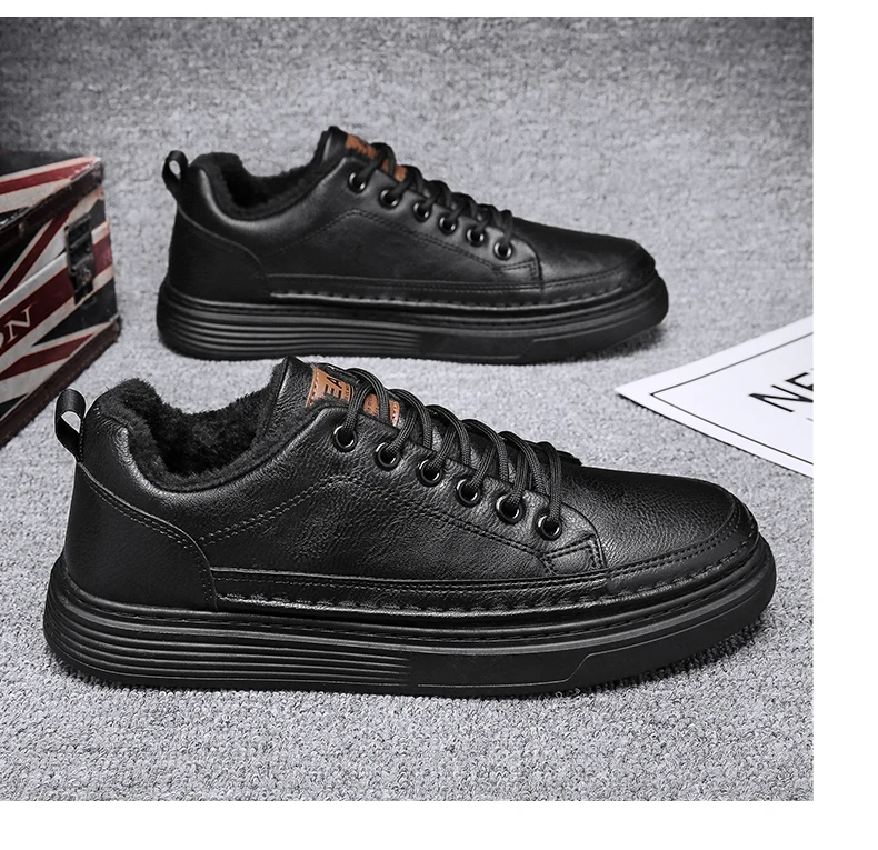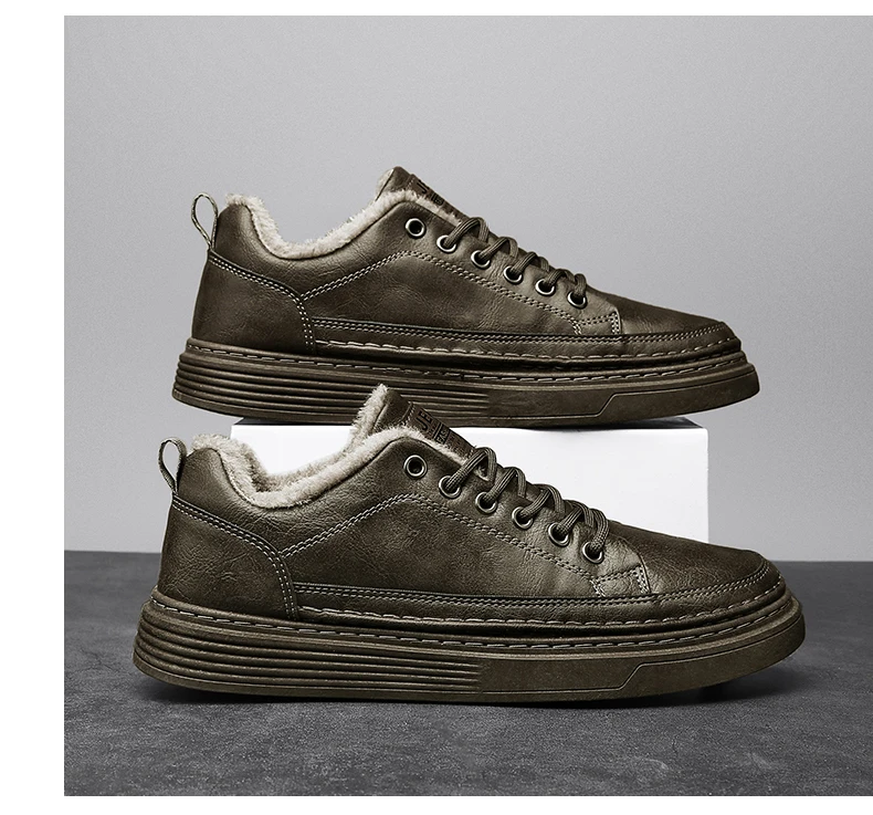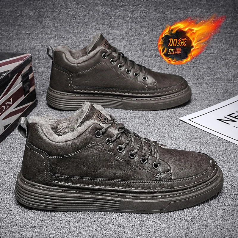 Мужские кожаные кроссовки, Повседневная Теплая обувь на плоской подошве, с бархатной подкладкой, Нескользящие, оригинальные дизайнерские, однотонные, из хлопка, для зимы