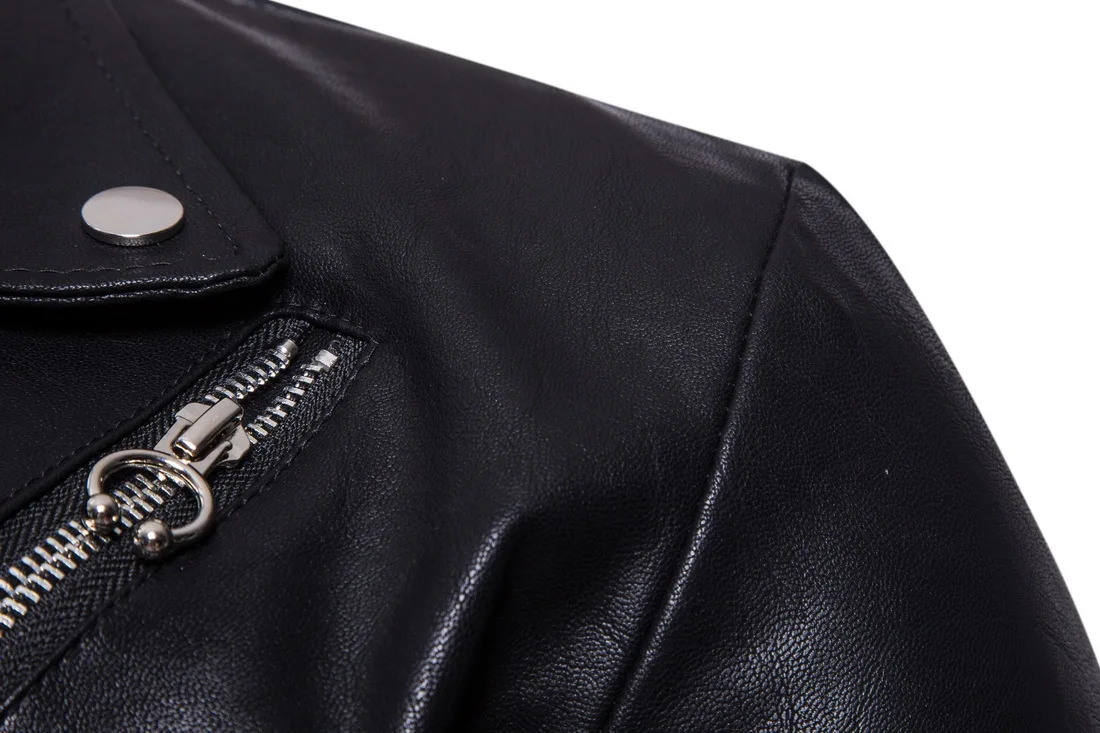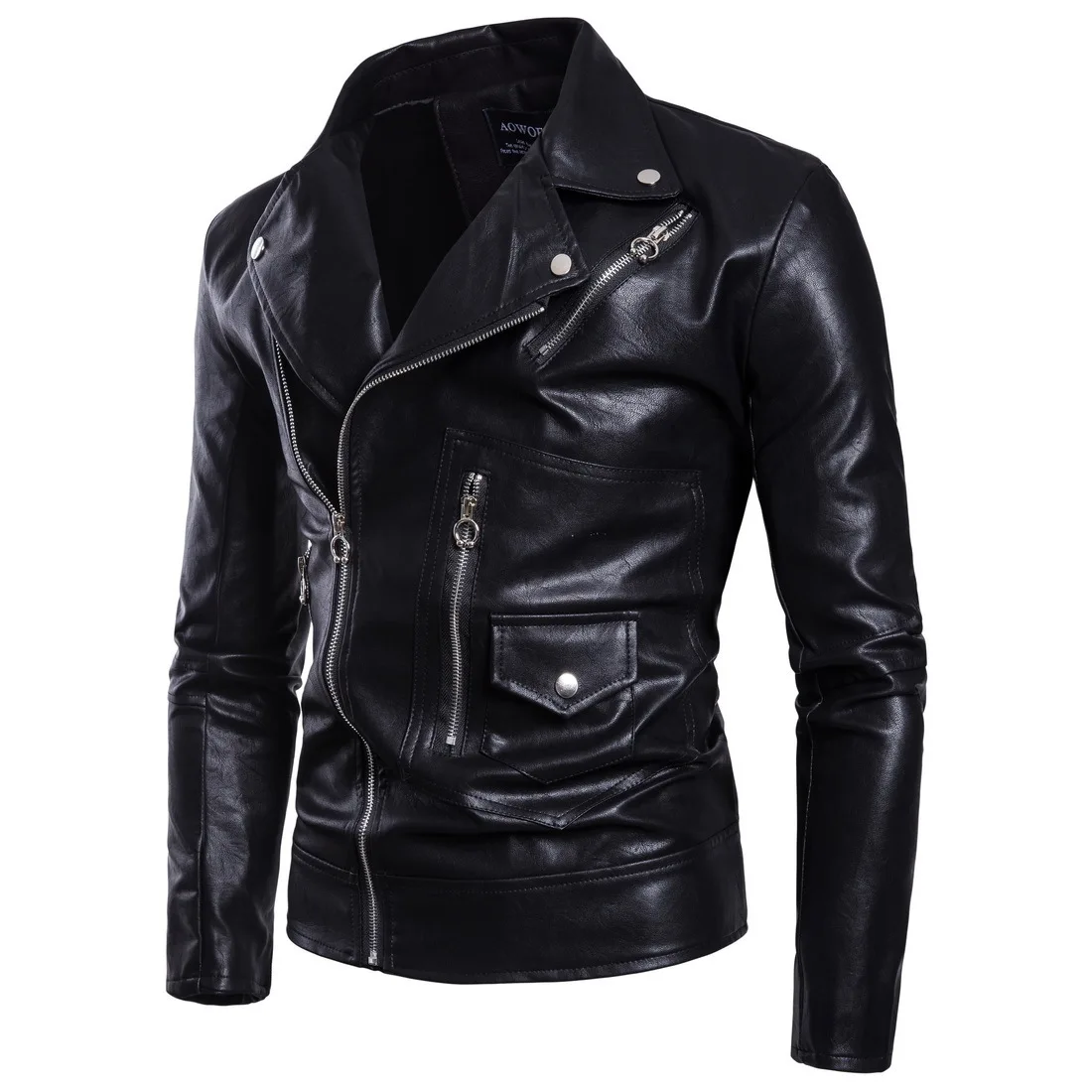 Куртка мужская кожаная на молнии, мотоциклетный пиджак, большие размеры, осень