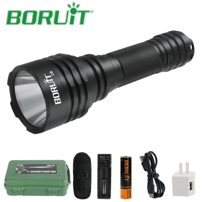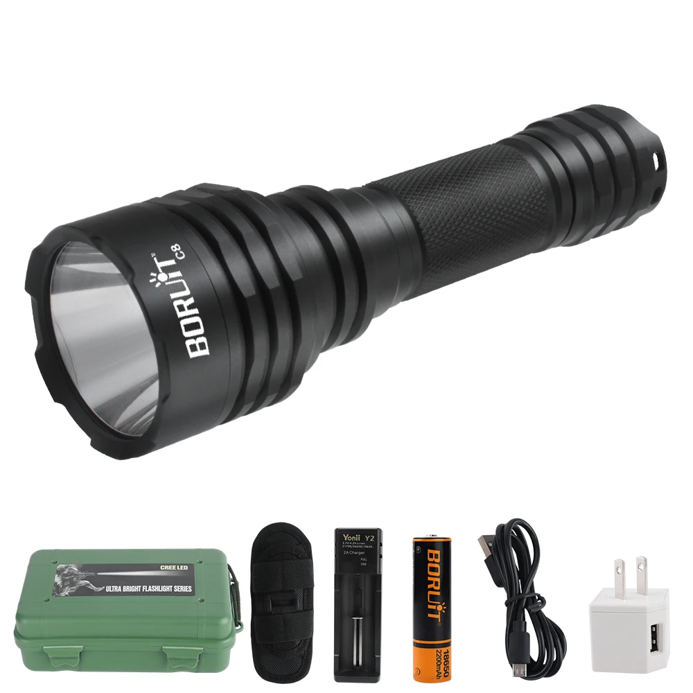 BORUiT Новый C8 1050LM яркий светильник дальнего действия, набор фонасветильник, мощный 5 режимов освещения, перезаряжаемый светодиодный фонарик 18650