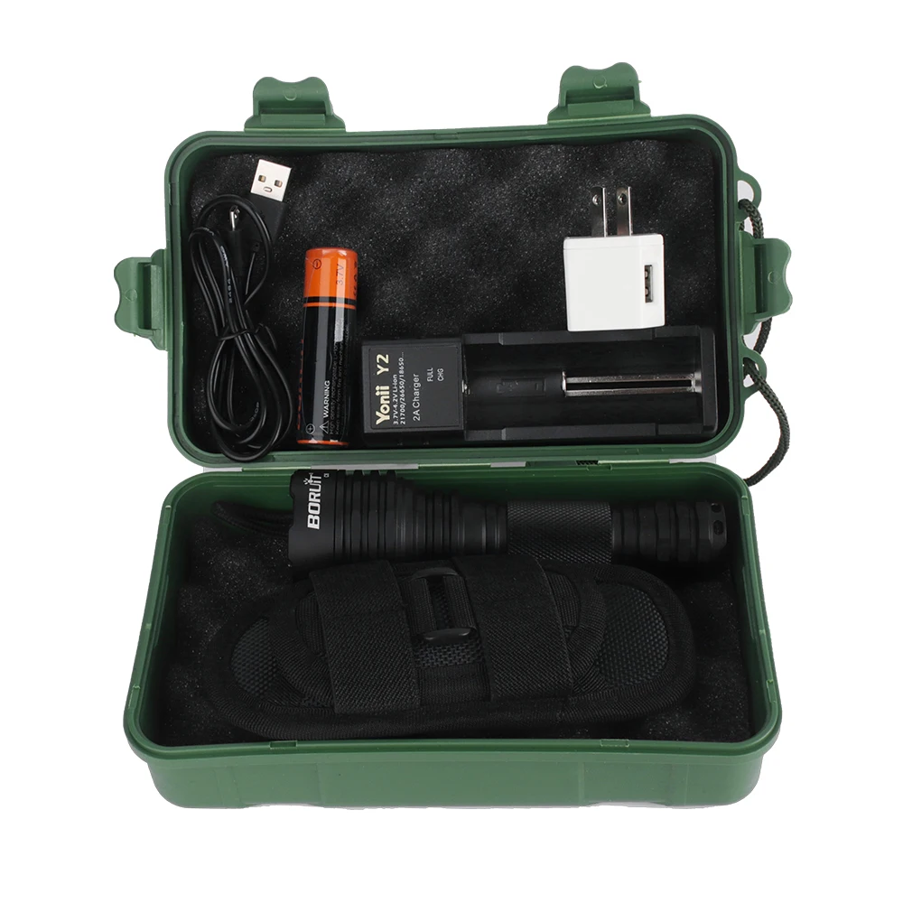 Вариант A:1 × C8 фонарик1 × аккумулятор 186501 × Зарядное устройство USBВариант B:1 × C8 фонарик1 × аккумулятор 186501 × Зарядное устройство USB1 × белая зарядная головка1 × чехол для фонарика на талии1 × зеленая пластиковая коробка