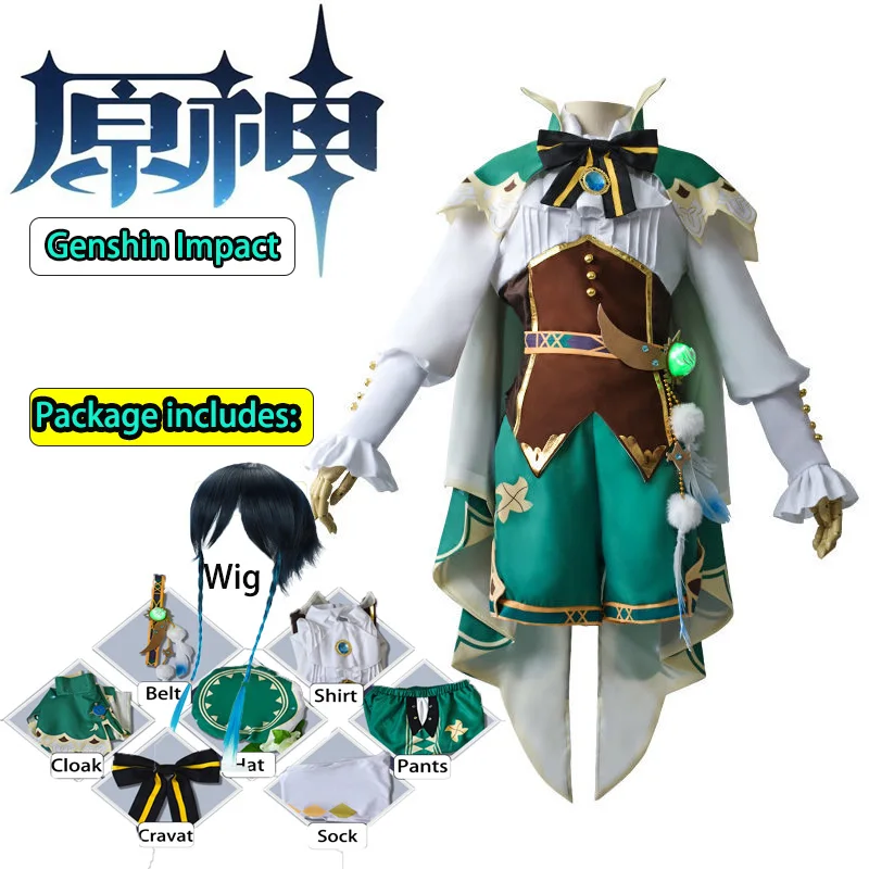 Аниме-игра Genshin Impact Косплей Venti костюм парик для вечевечерн...