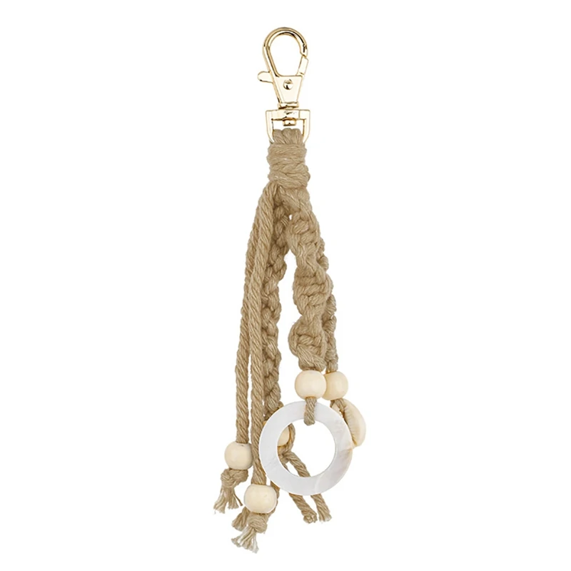 5 шт., бохо макраме, брелки с деревянной бусиной и ракушками, аксессуары ручной работы, брелок для ключей от кошелька