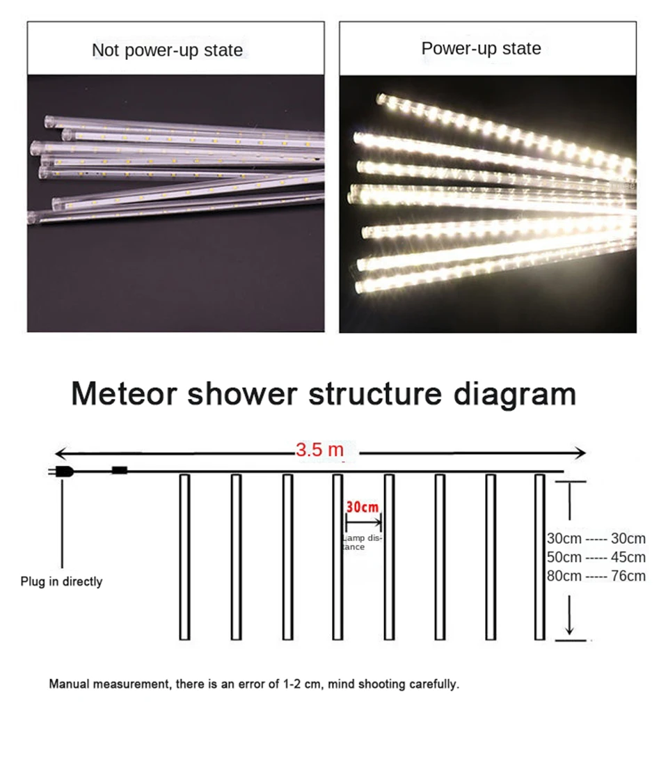 【 IP65 Водонепроницаемый 】Наружные метеоритные душевые огни, построенные по технологии защиты от атмосферных воздействий, которые могут выдерживать экстремальные температуры, дождь, ветер и влажный климат, идеально подходят для украшения на открытом воздухе.