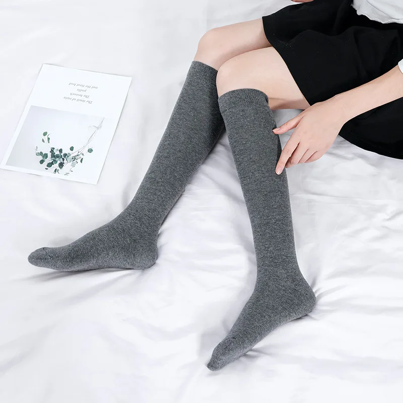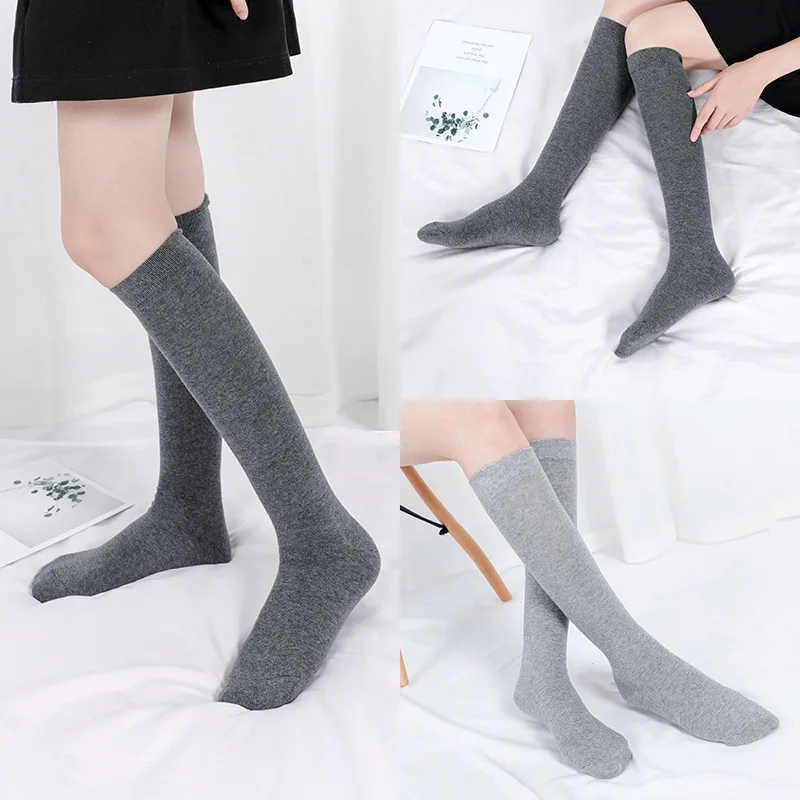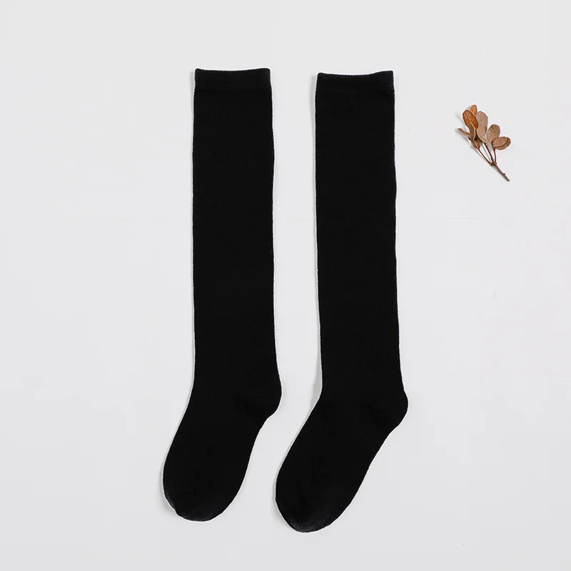 Женские теплые носки до колена, дышащие однотонные хлопковые носки ...