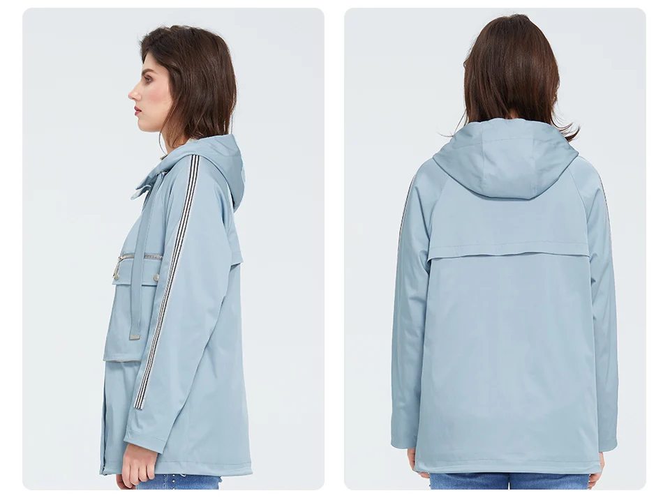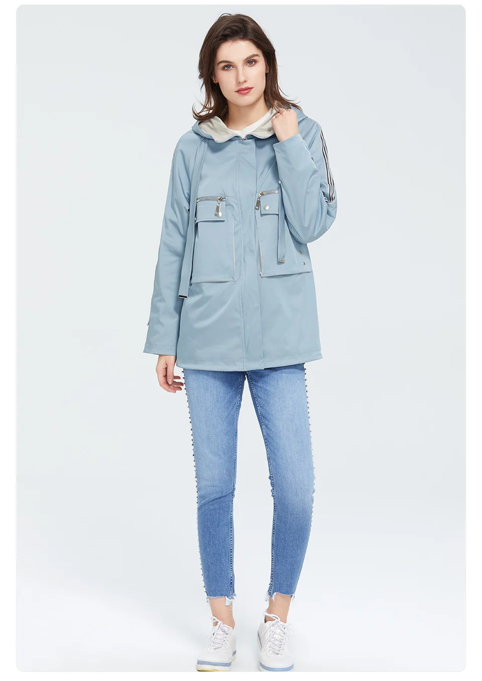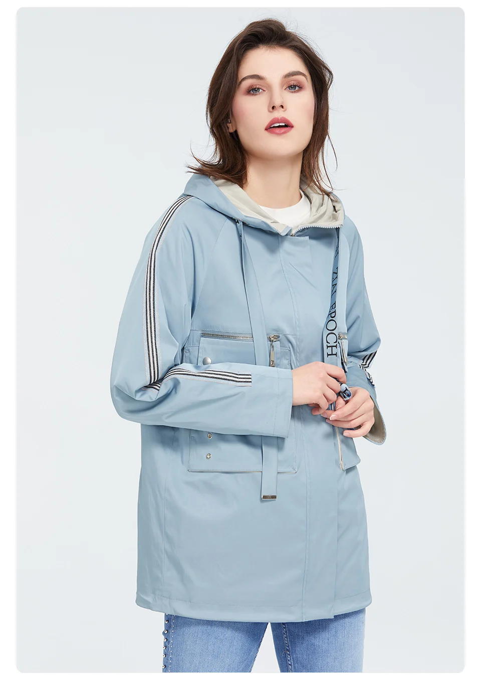 Тренч Женский демисезонный из хлопка, ветрозащитный, с капюшоном, 9381
