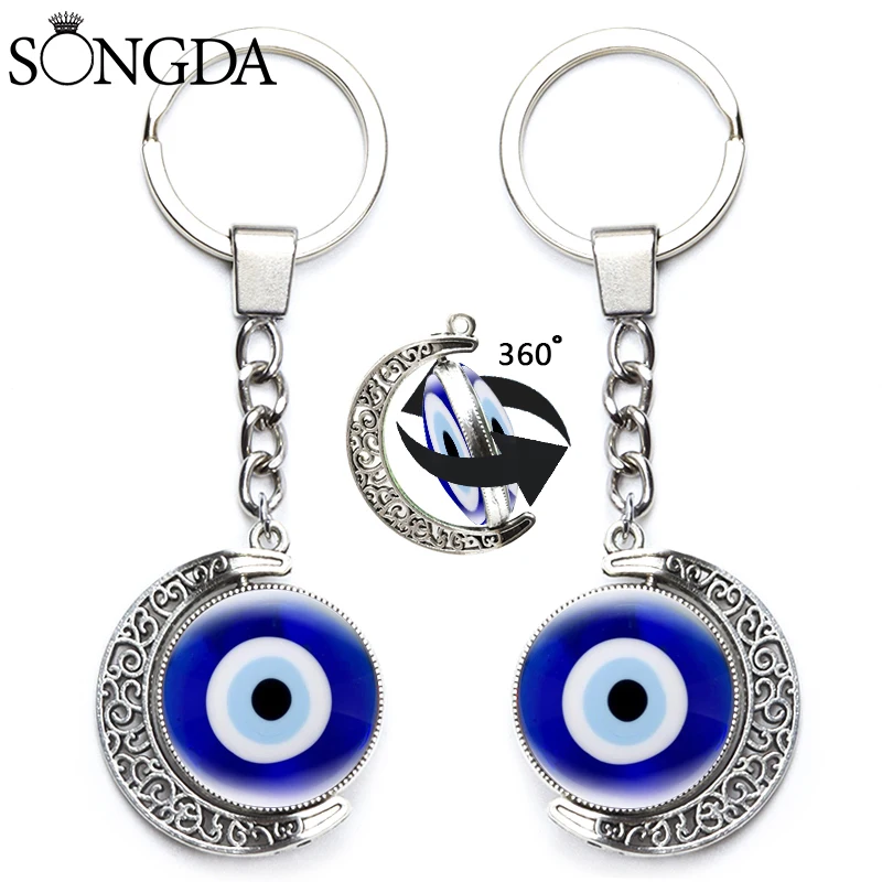 Женский стеклянный амулет злого зла, подвеска с поворотом на 360 градусов, счастливый брелок с Луной, модные ювелирные украшения