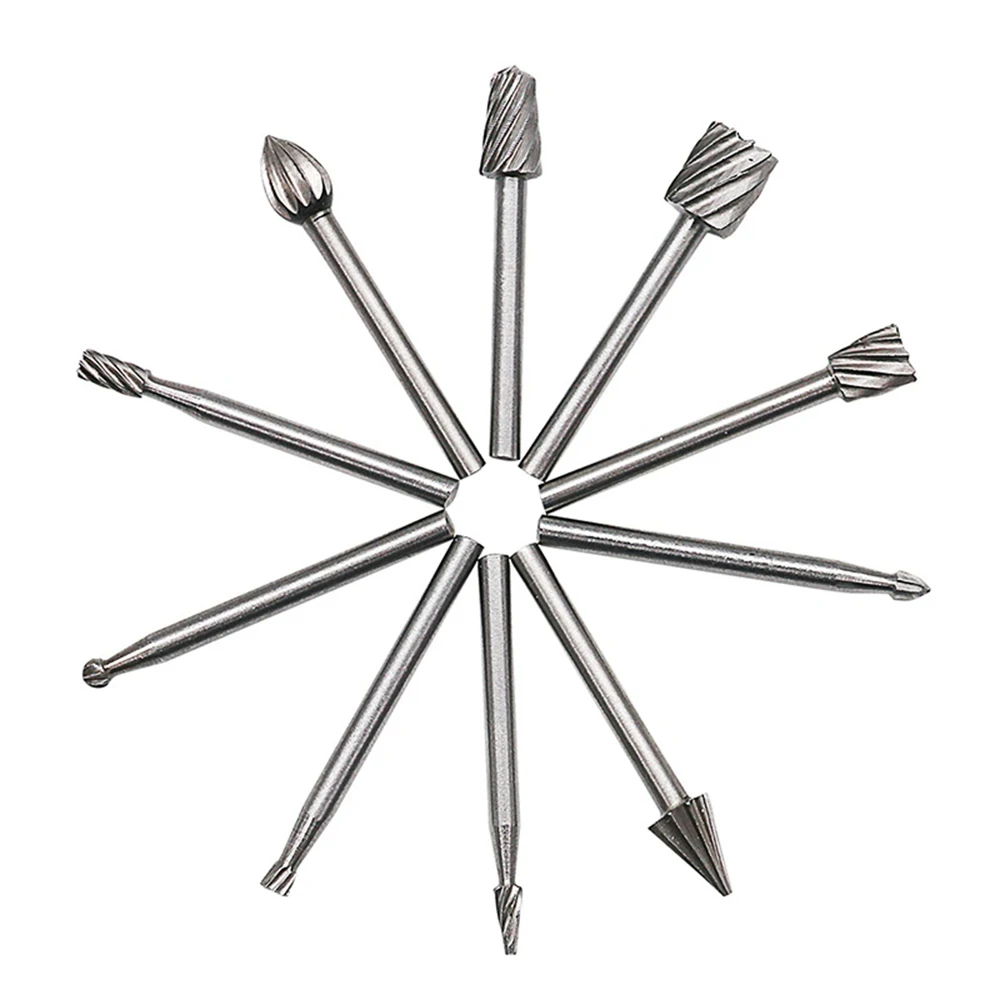 10 шт. HSS Фрезерные фрезы заусенцы роторные Инструменты Роторная резьба резной нож резак инструмент гравировки дерева работы используется для Dremel