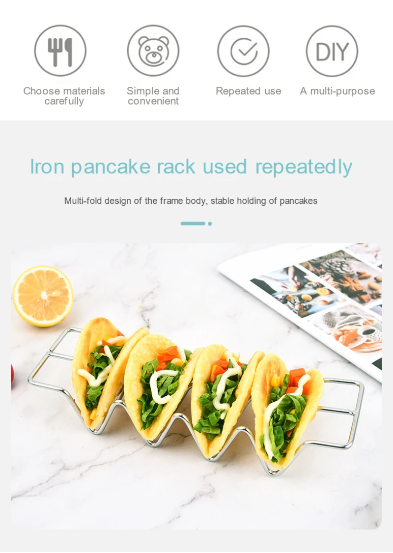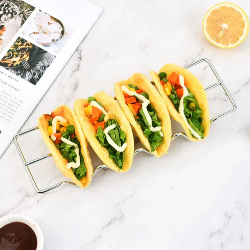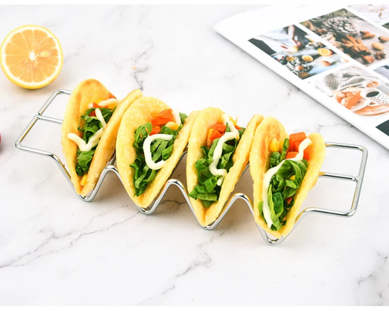 Использовать. Совершенно новая и высококачественная, удобная кухонная утварь, которая держит ваши Тако в вертикальном положении, сделанная из полированной