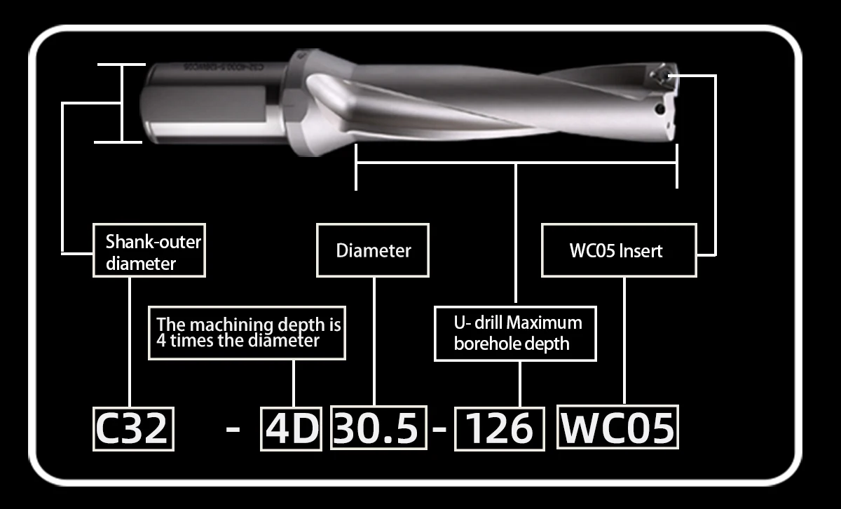Сверло серии WC металлическое сверло 13 мм-50 мм Глубина 2D 3D 4D сверло с индексируемым U-образным сверлом оборудование, токарный станок, ЧПУ высокое качество