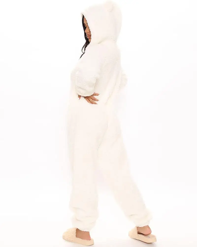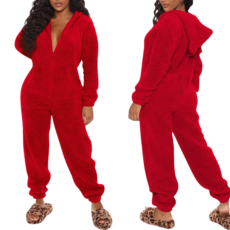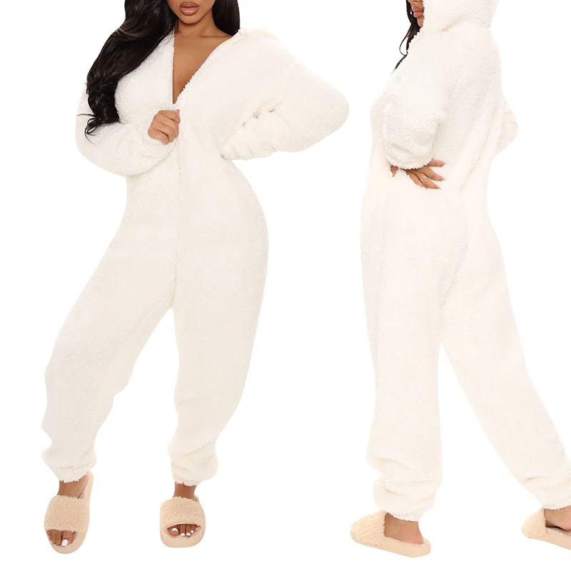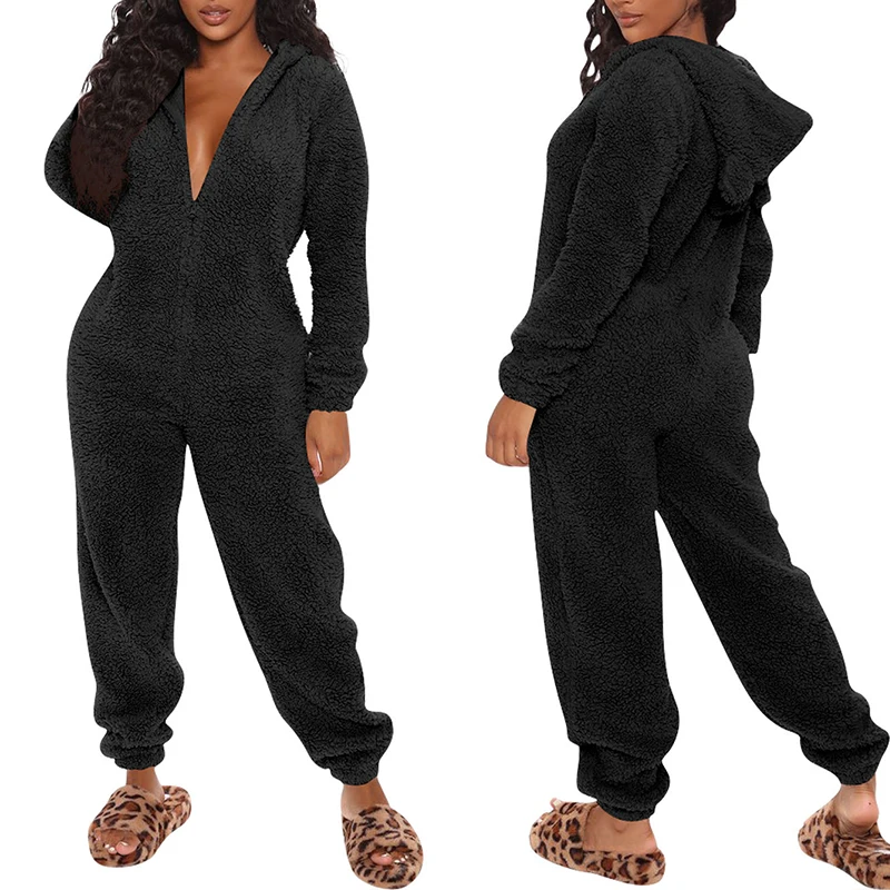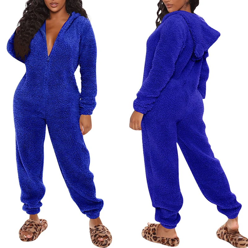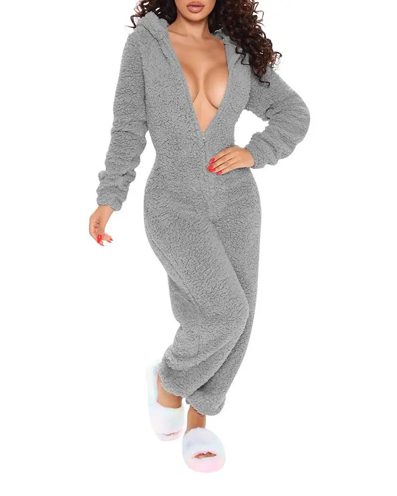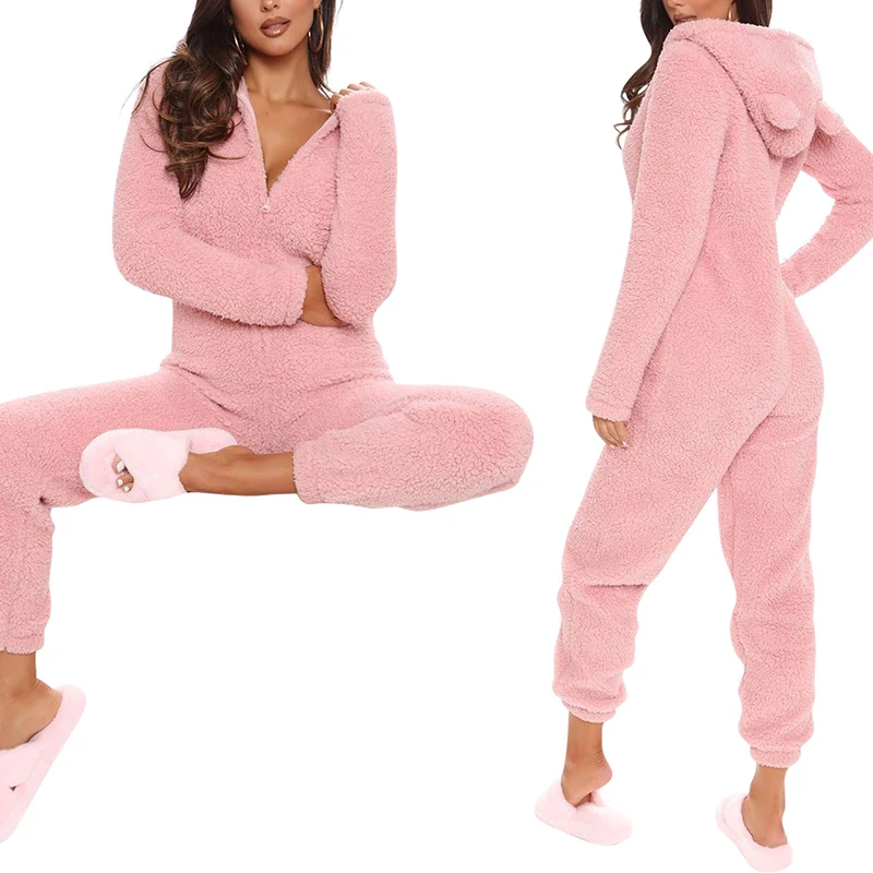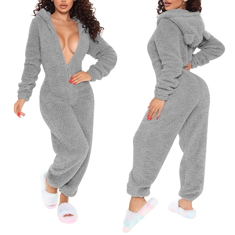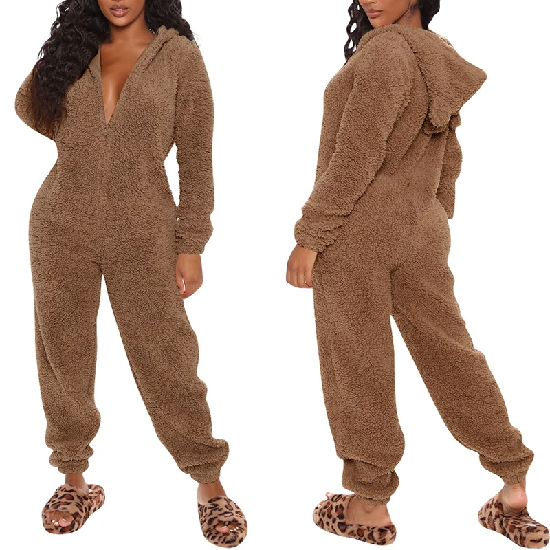 Зима 2021, женская теплая Домашняя одежда с длинным рукавом, женская одежда для сна, комбинезоны, пушистый комбинезон с капюшоном и 3D застежкой-молнией спереди