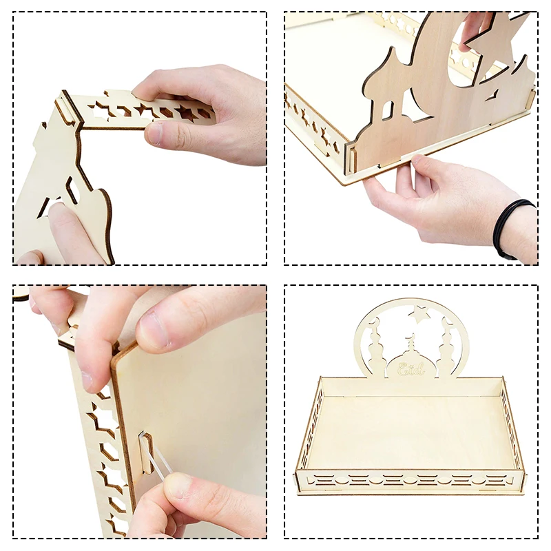 Деревянный десертный поднос Eid Mubarak, декор EID MUBARAK, деревянный поднос сделай сам, домашний кувшин Рамадан, мусульманский декор, креативный стол, кондитерский поднос
